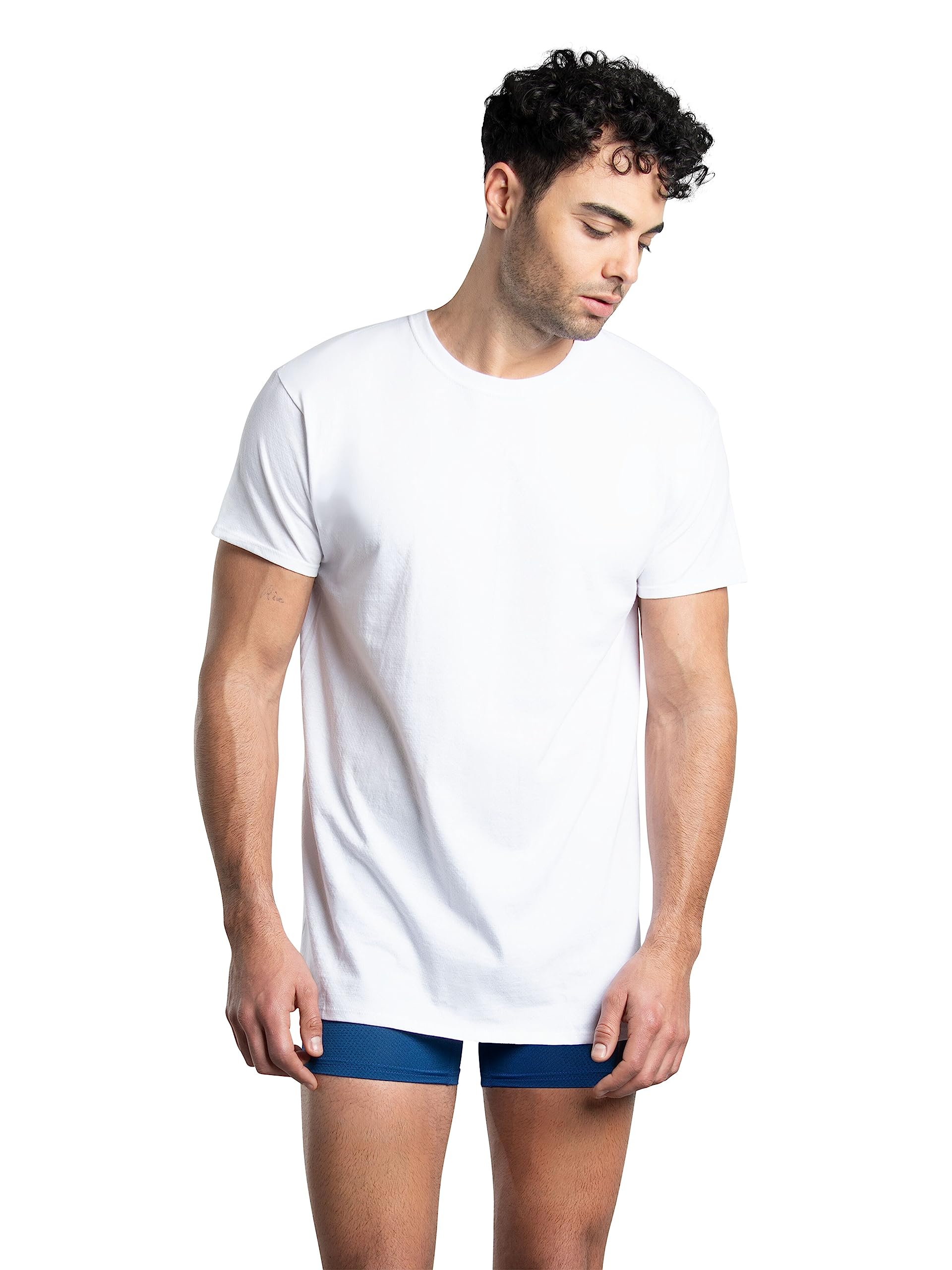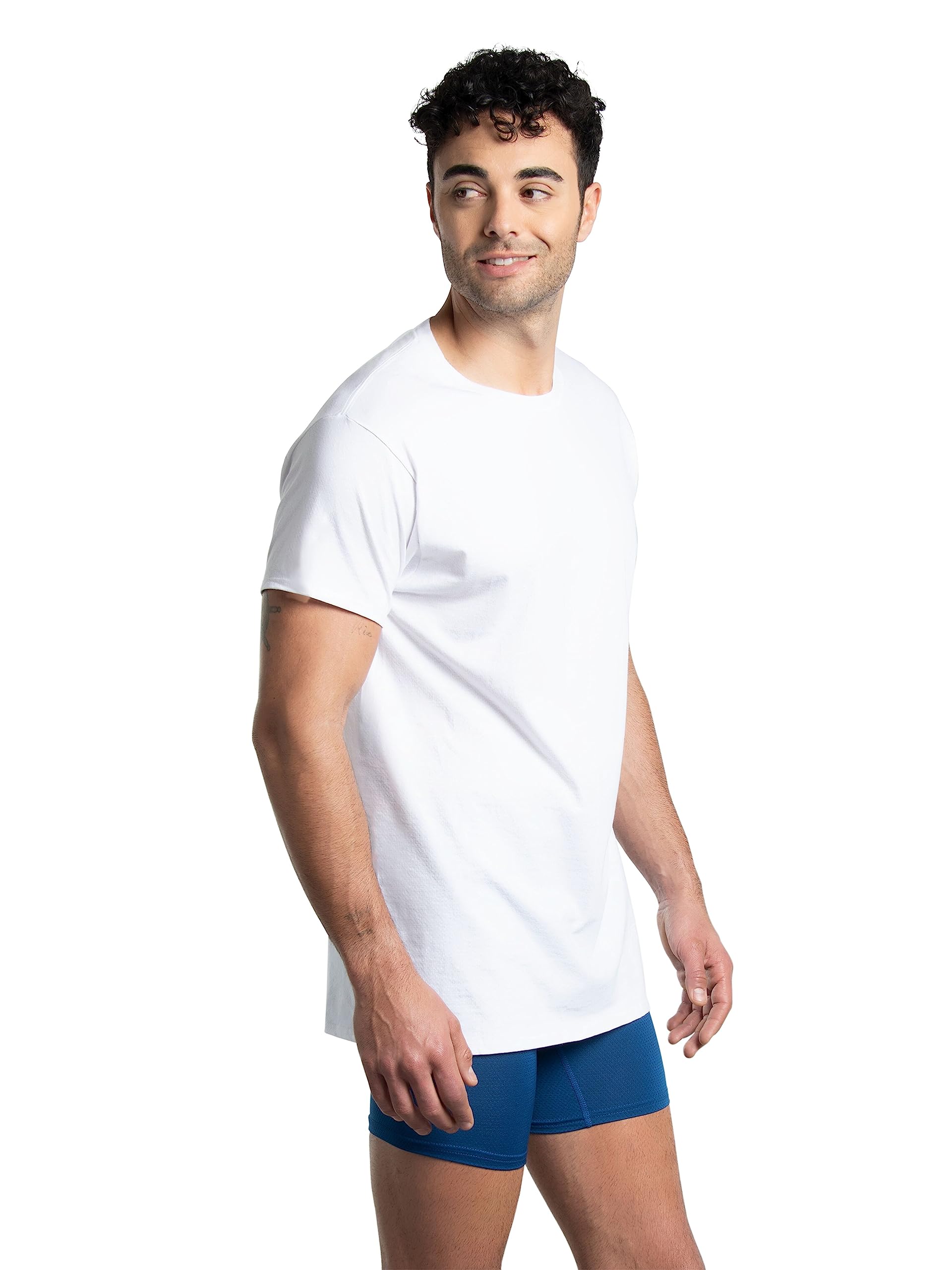 Description Stay comfy all day when you wear Fruit of the Loom Men's Breathable White Crew T-Shirts. This undershirt is an essential for every man’s wardrobe. Each shirt features a micro-mesh fabric that promotes air flow, preventing you from getting hot. This shirt also has moisture-wicking technology keeping you dry and comfortable no matter what the day brings. Featuring a stay tucked design, the crews won't ride up on you. This t-shirt is versatile enough to wear underneath your favorite dress shirt or even wear on their own.
