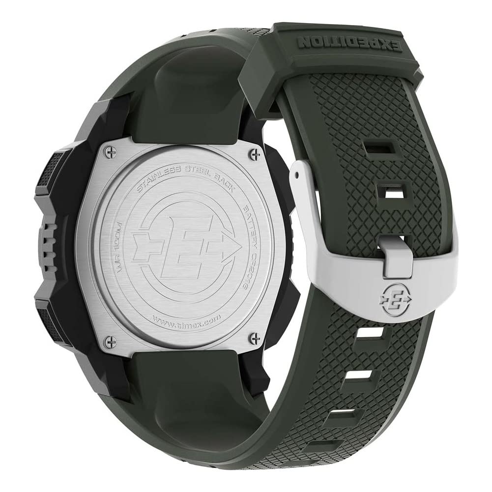 Description Designed for outdoor tests, Timex Men's T49896 Expedition Digital Shock CAT Black Resin Strap Watch is ready for anything. It’s got alarms, a stopwatch, and a countdown timer, plus Indiglo night-light for after dark. The hardened resin case is officially shock resistant to I.S.O. standards and water resistant to 100 meters (330 feet).