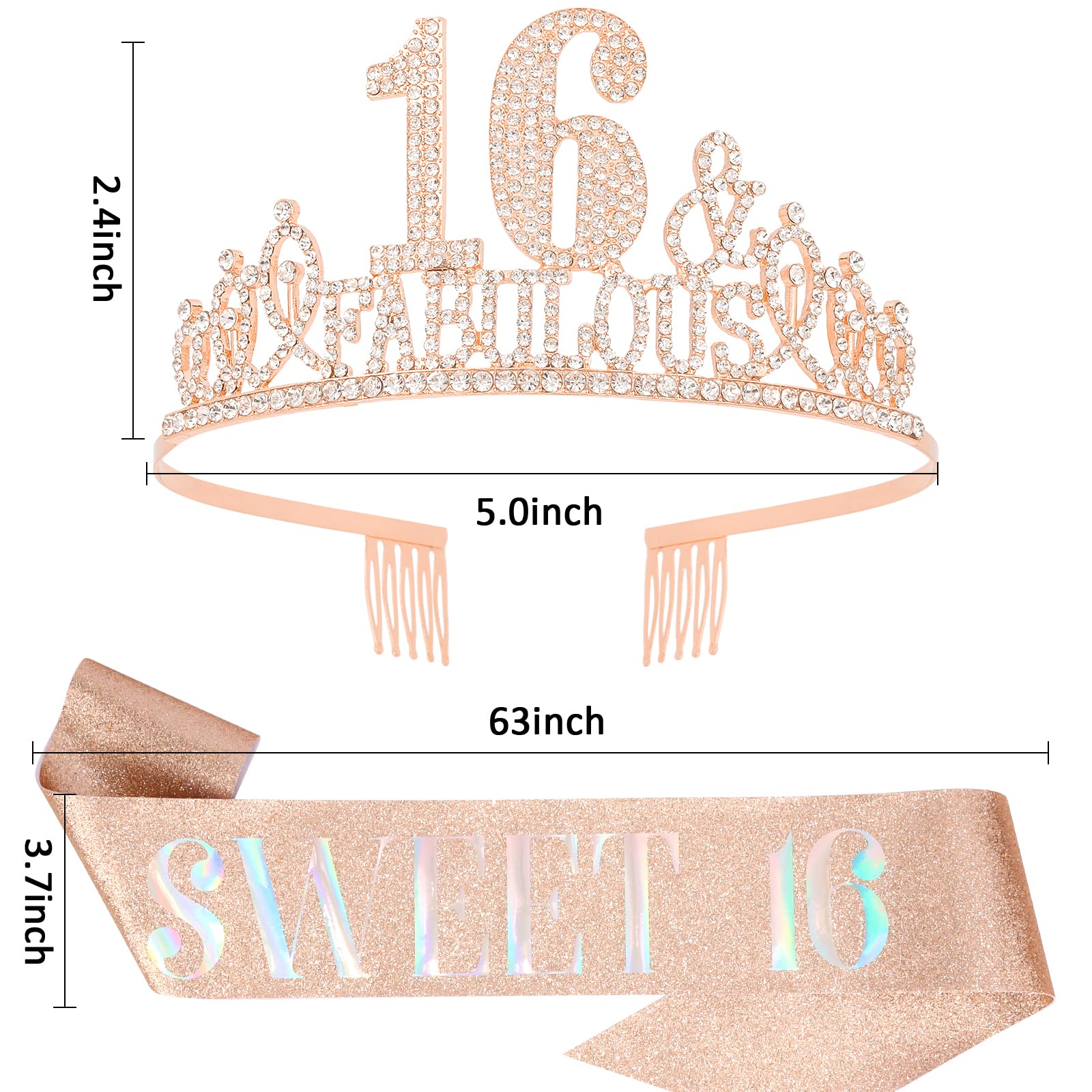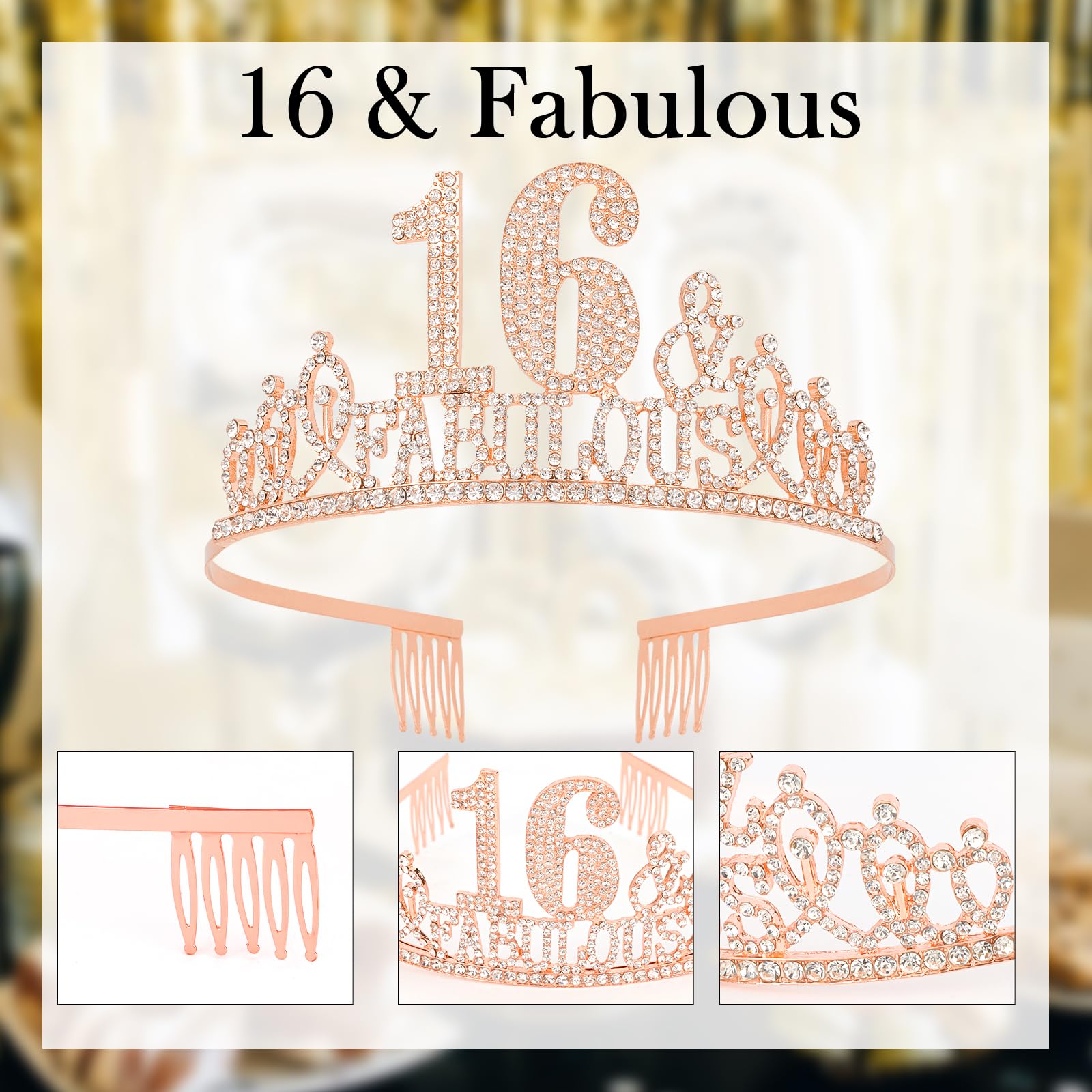 【Sparkling 16th Birthday Tiara】”16&Fabulous” birthday crown is made of premium alloy inlaid sparkling rhinestones, reflects charming sparkle from every angle