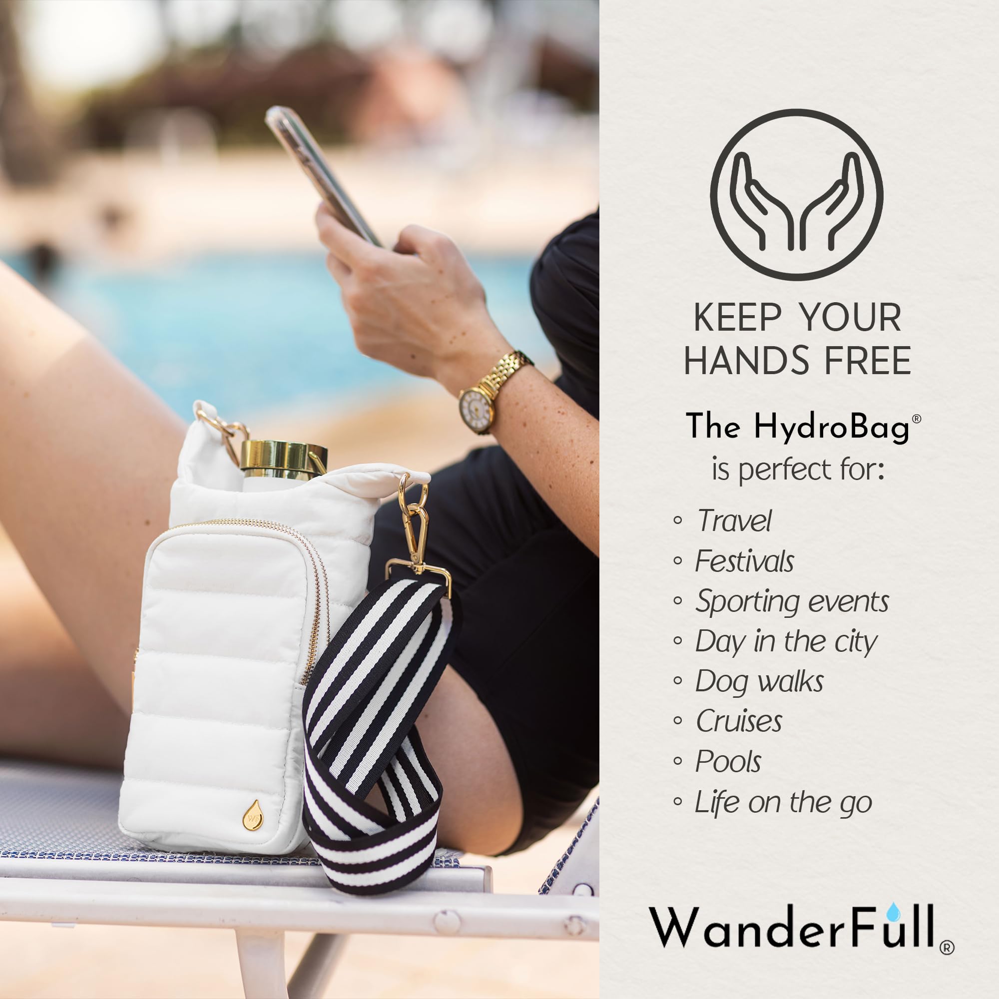 STAY HANDS-FREE WHILE HYDRATED: The HydroBag is a stylish water bottle carrier with strap, ideal for traveling, festivals, sports events, or even walking the dog. It keeps your hands free while ensuring your bottle is always within reach.