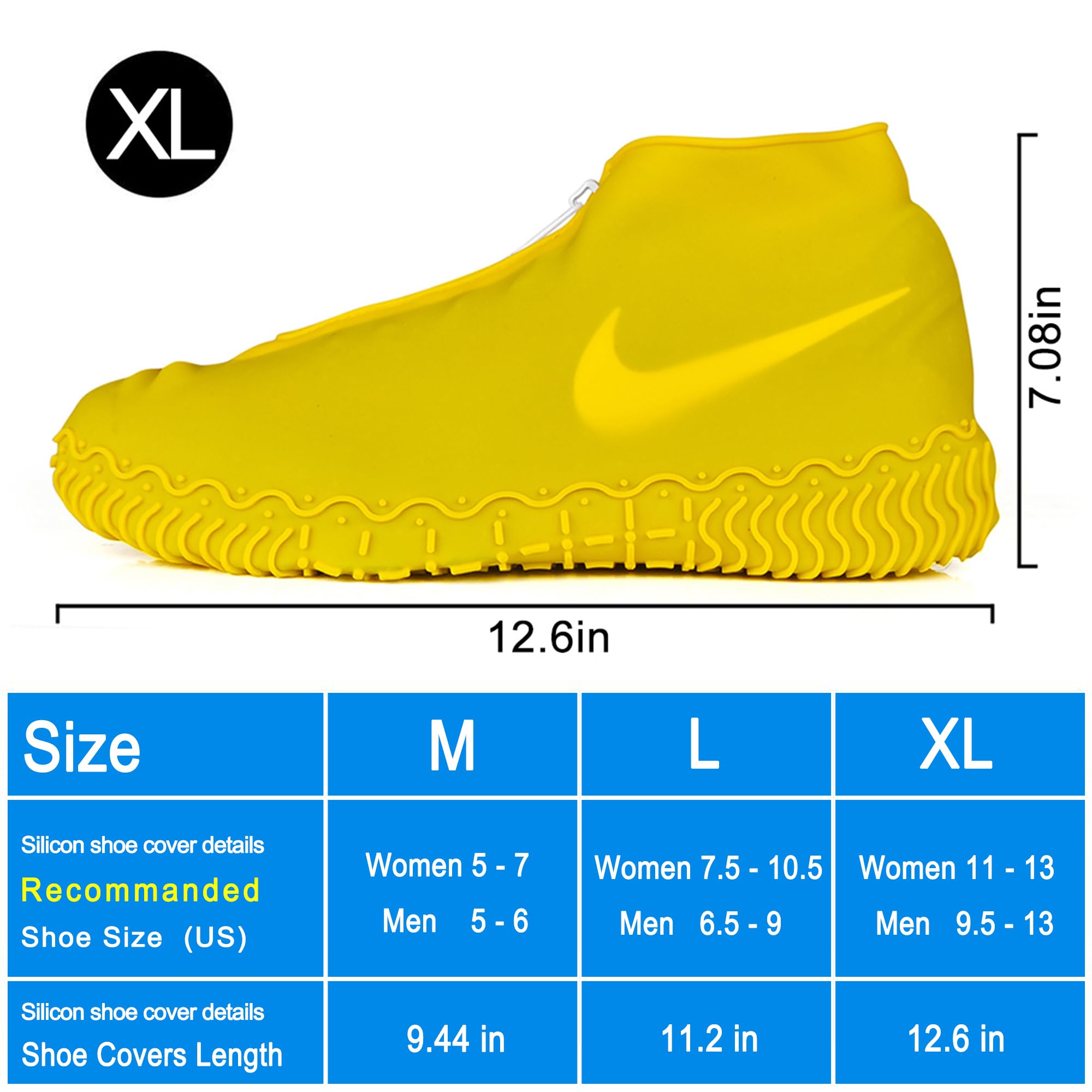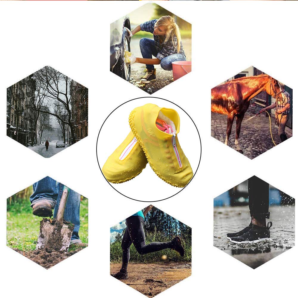 ALL-ROUND WATERPROOF, REUSABLE : Stretchable silicone And very resistant to tearing, Waterproof zipper strip design helps you to put them on and off easily,it can avoid rain or water into the shoe cover from zipper,extending the lifetime of your footwear. Waterproof shoe cover no need to take hundreds of shoe & boot covers, simple to wear silicone waterproof cover just spend one minute.