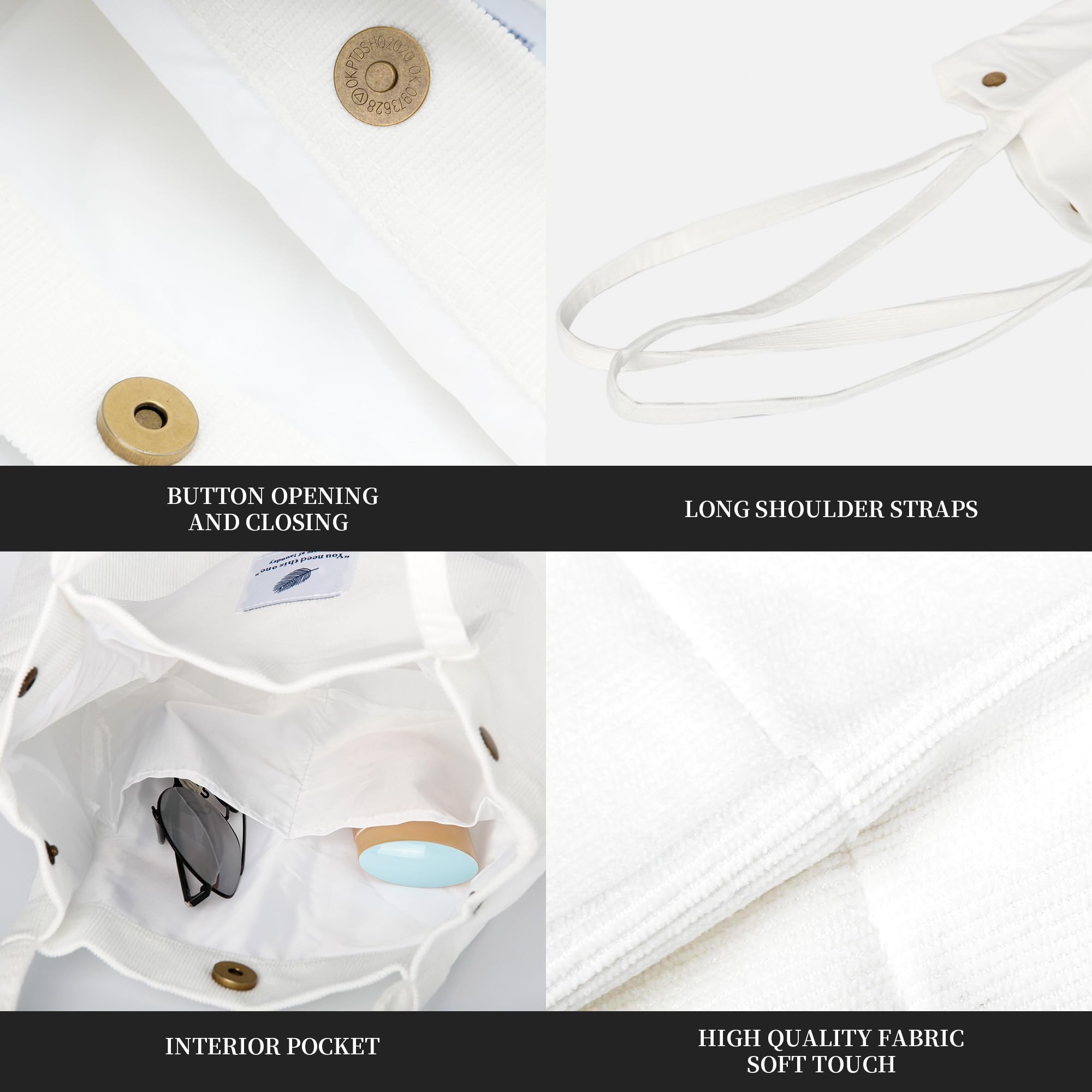 HIGH QUALITY: The tote bag is made of sturdy corduroy fabric, soft and warm to the touch, with reinforced shoulder straps, very strong and durable, smooth lining, very easy to clean and can be used repeatedly for a long time.