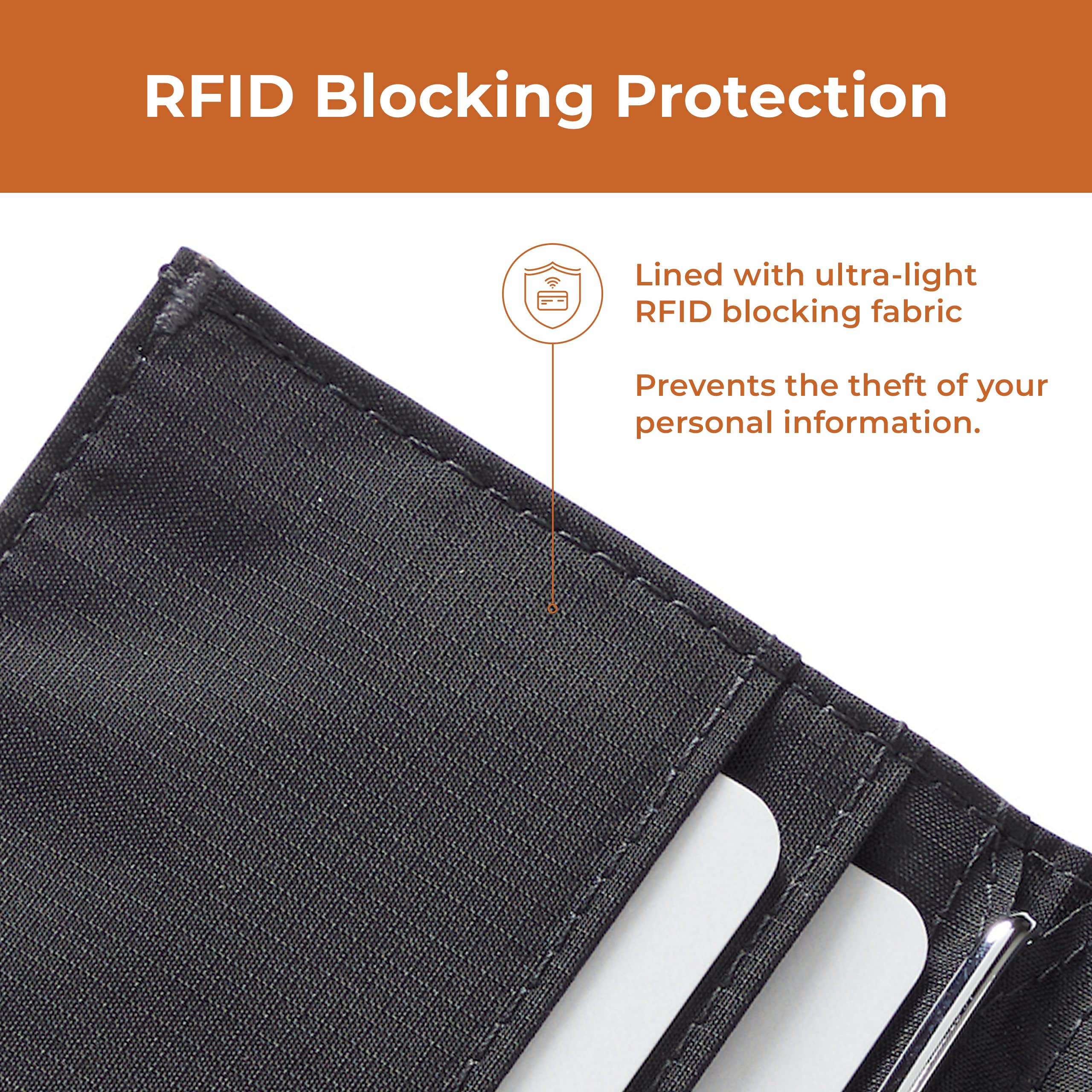 RFID THEFT PROTECTION: Being a victim of RFID skimming is a big pain. This form of theft uses high-frequency scanners to capture credit card & passport information from a distance. Allett RFID blocking wallets contain an ultra-thin layer of military-grade RFID blocking material to prevent information theft and give you peace of mind.
