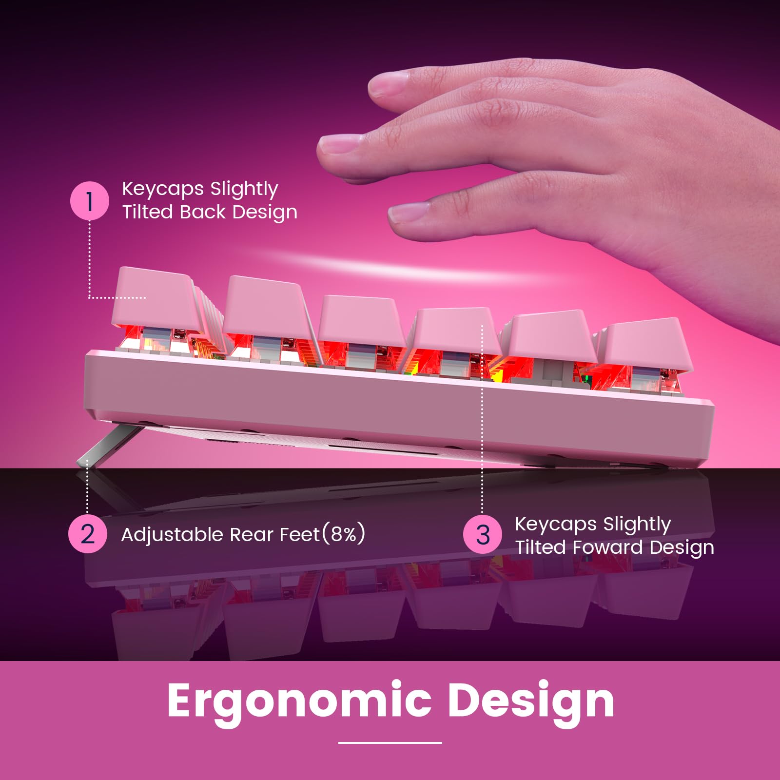 【Advanced Ergonomic Comfort】This PC gamer Keyboard adopts a scientific stair-up keycap design that keeps your arms in the most natural state to minimize hand fatigue for long time use.In order to improve your posture and make you more comfortable during use,the wired keyboard comes with 2 strong foldable rear kickstands to slope it.Moreover,the keyboard is non-slip enough because there are 4 rubber padding underneath the keyboard.