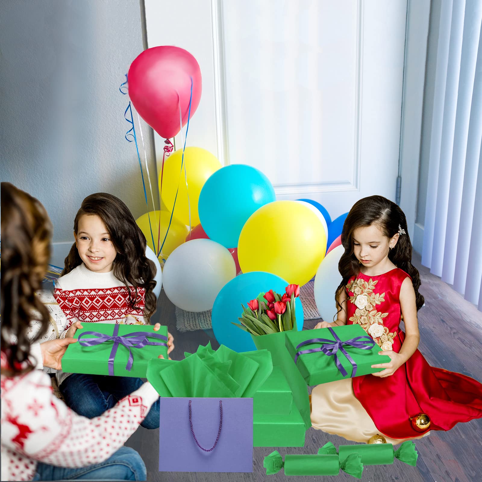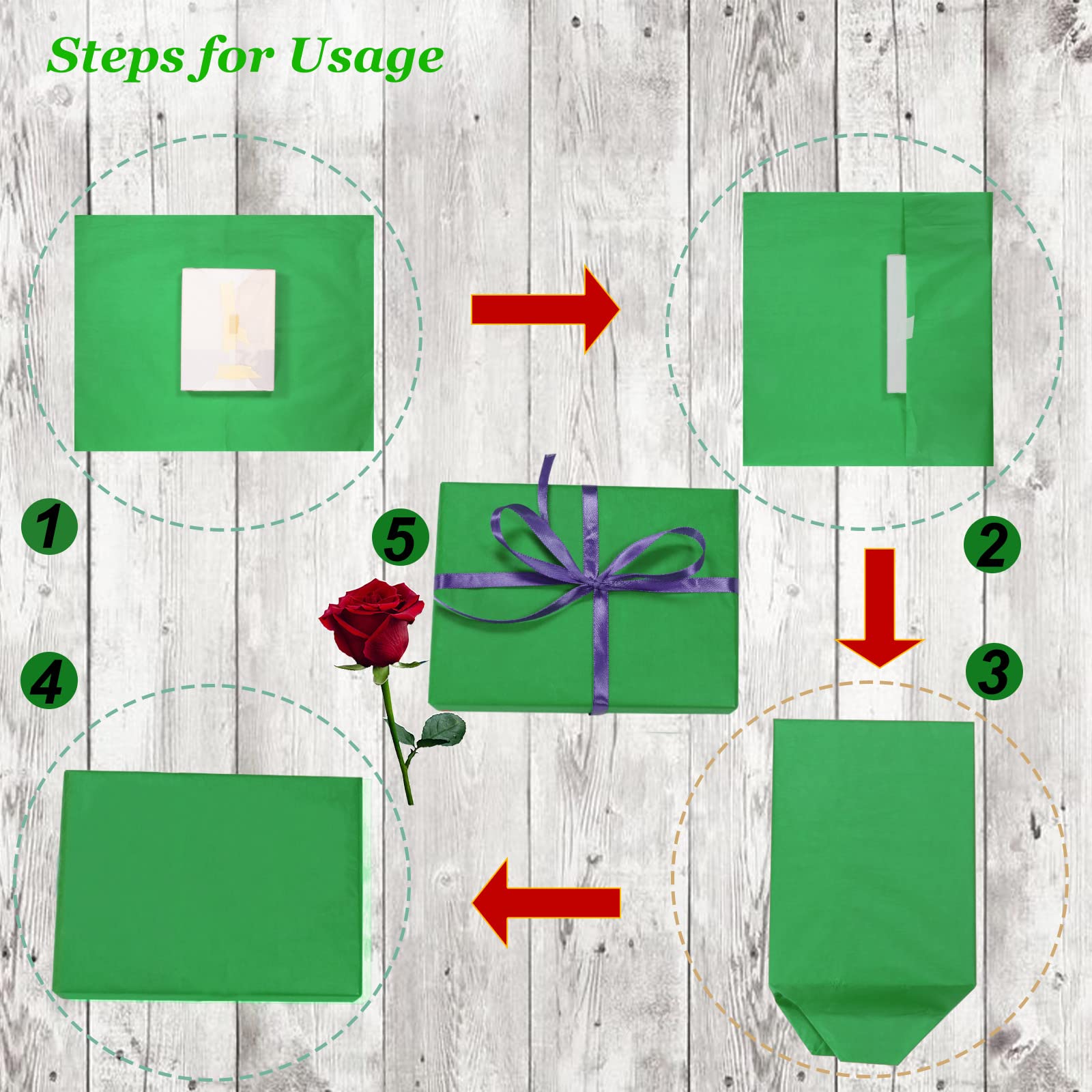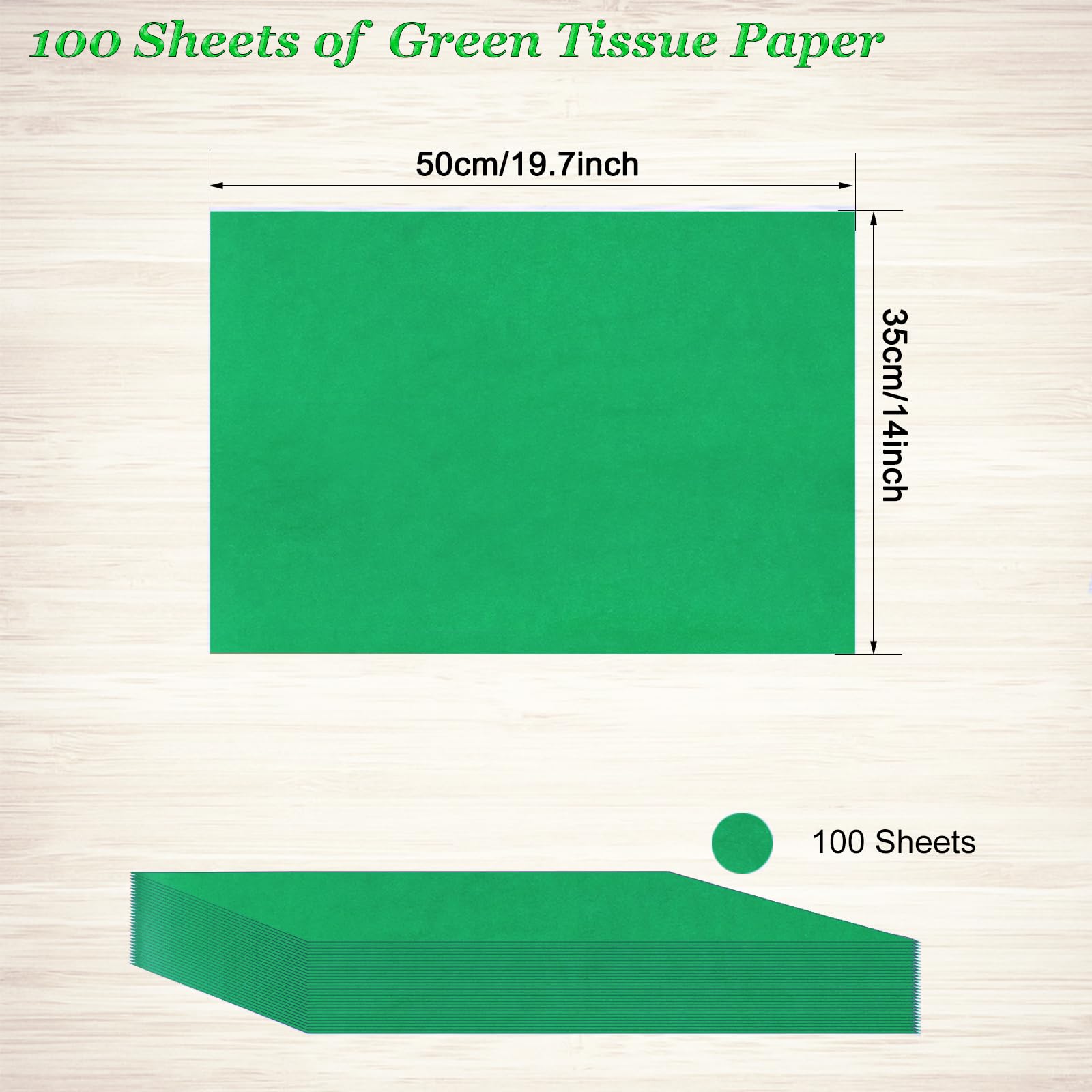 The green tissue paper bulk package contains 100 sheets of 14 x 20 inches green wrapping paper, enough quantity for you to use at will