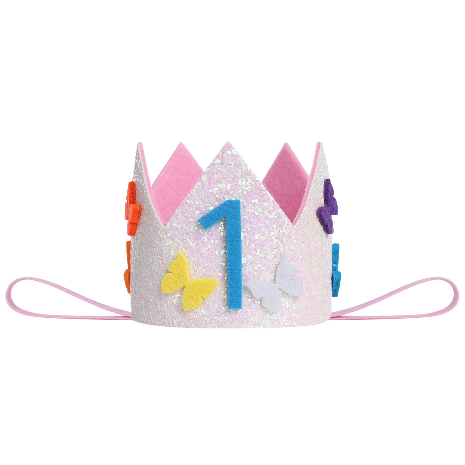Matching Butterfly Crown Headwear: Beautiful sequins butterfly fairy theme party outfits, infant princess butterfly costume with butterfly romper tutu dress clothes set. The matching crown headband headwear, cute and adorable colorful butterflies and No. 1 for first birthday, shiny and lovely on baby's head. You can change it with a butterfly smash cake topper or butterfly party hat, complete it a full butterfly look for theme party.