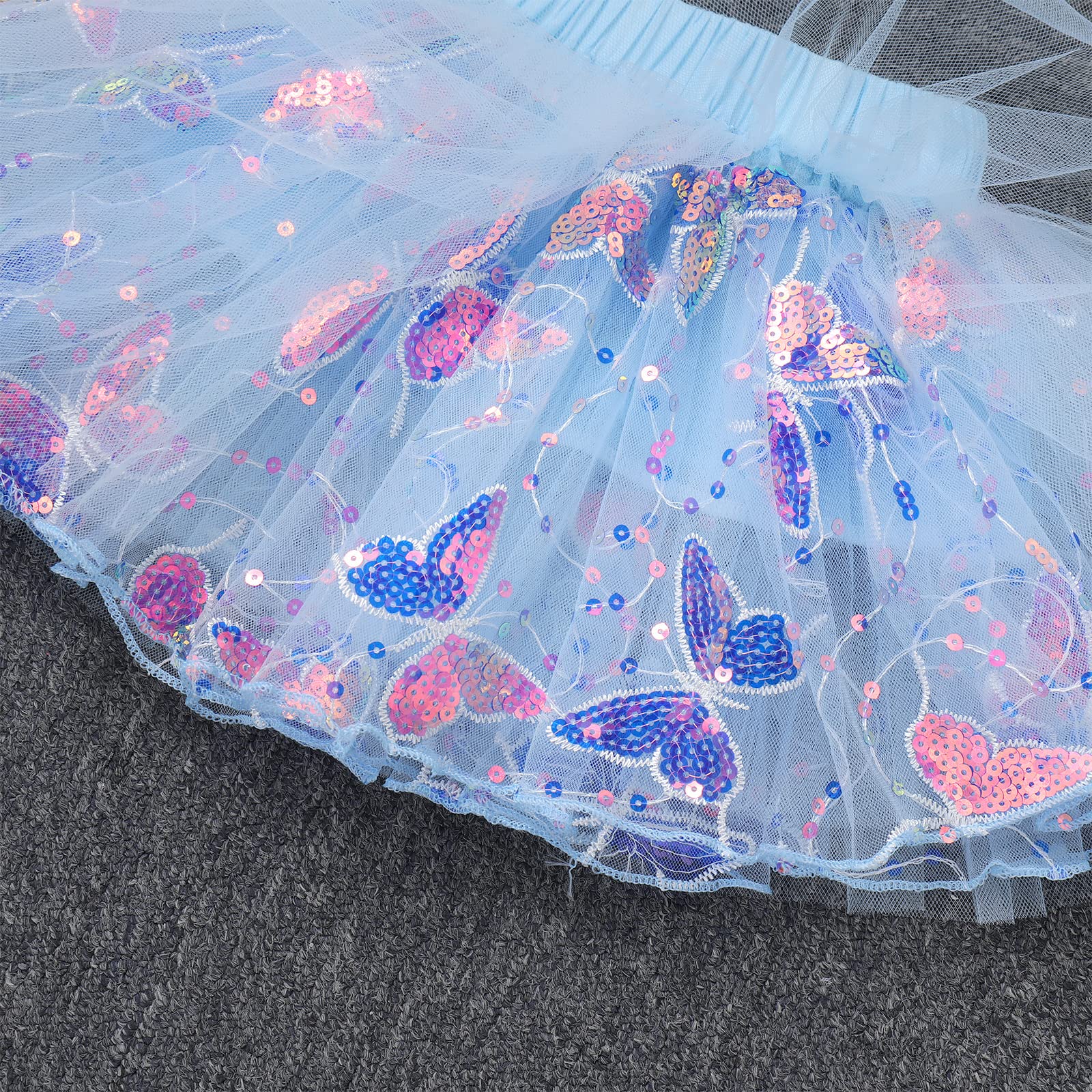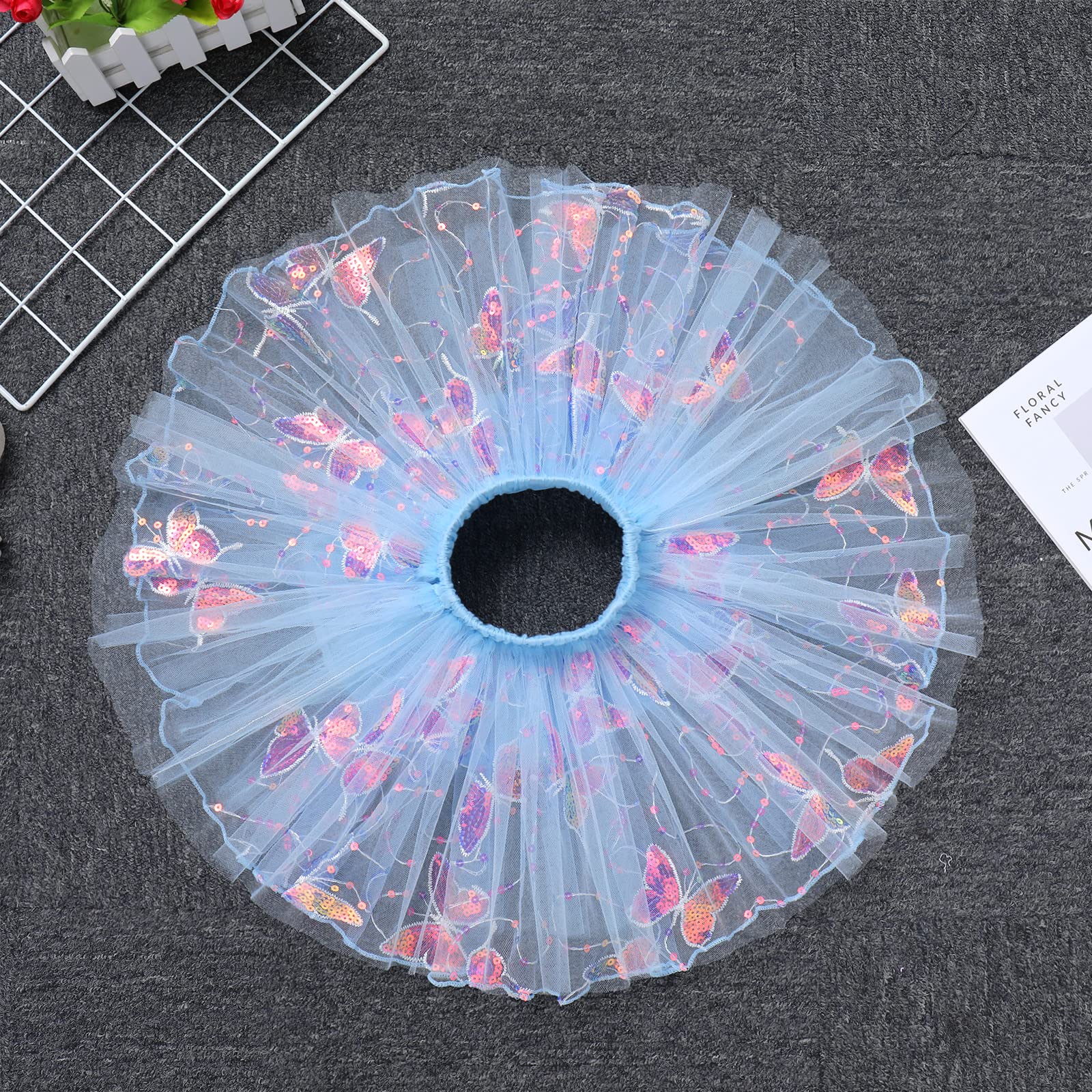 Sequins Butterfly Birthday Tulle Tutu Skirt: Butterfly first birthday outfit girl, sequins butterfly 1st birthday tutu outfit, pink butterfly bodysuit with bloomers tutu and headband headwear. Short ruffle tulle tutu skirt, total 6 layers, 1 layer sparkle sequins butterfly tulle under 1 layer soft tulle, 3 layers tulle and 1 layer lining, pretty and adorable. Pink, purple, blue color ruffle tulle, adds to a puffy butterfly dress up costume look. Perfect for your little ones first birthday!