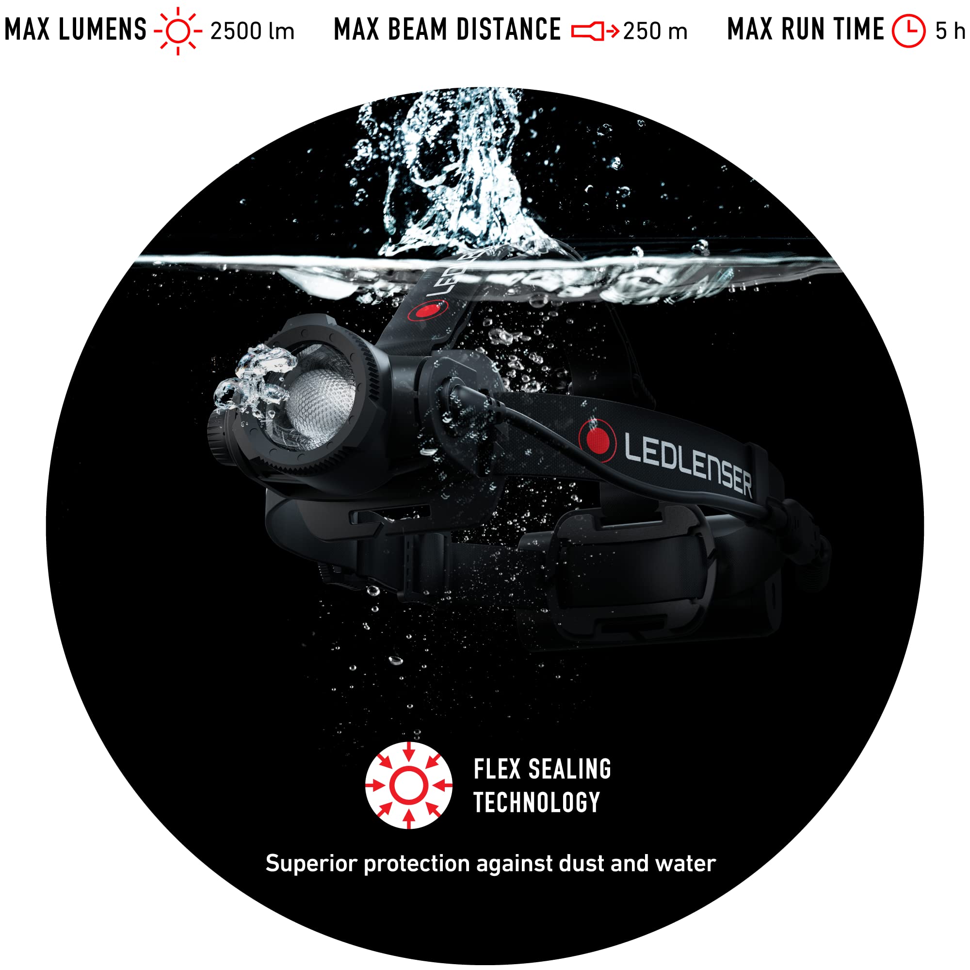 Features Ledlenser Flex Sealing Technology that provides extreme protection against dust and water (IP67) so it's always ready for dusty garages, damp basements and more