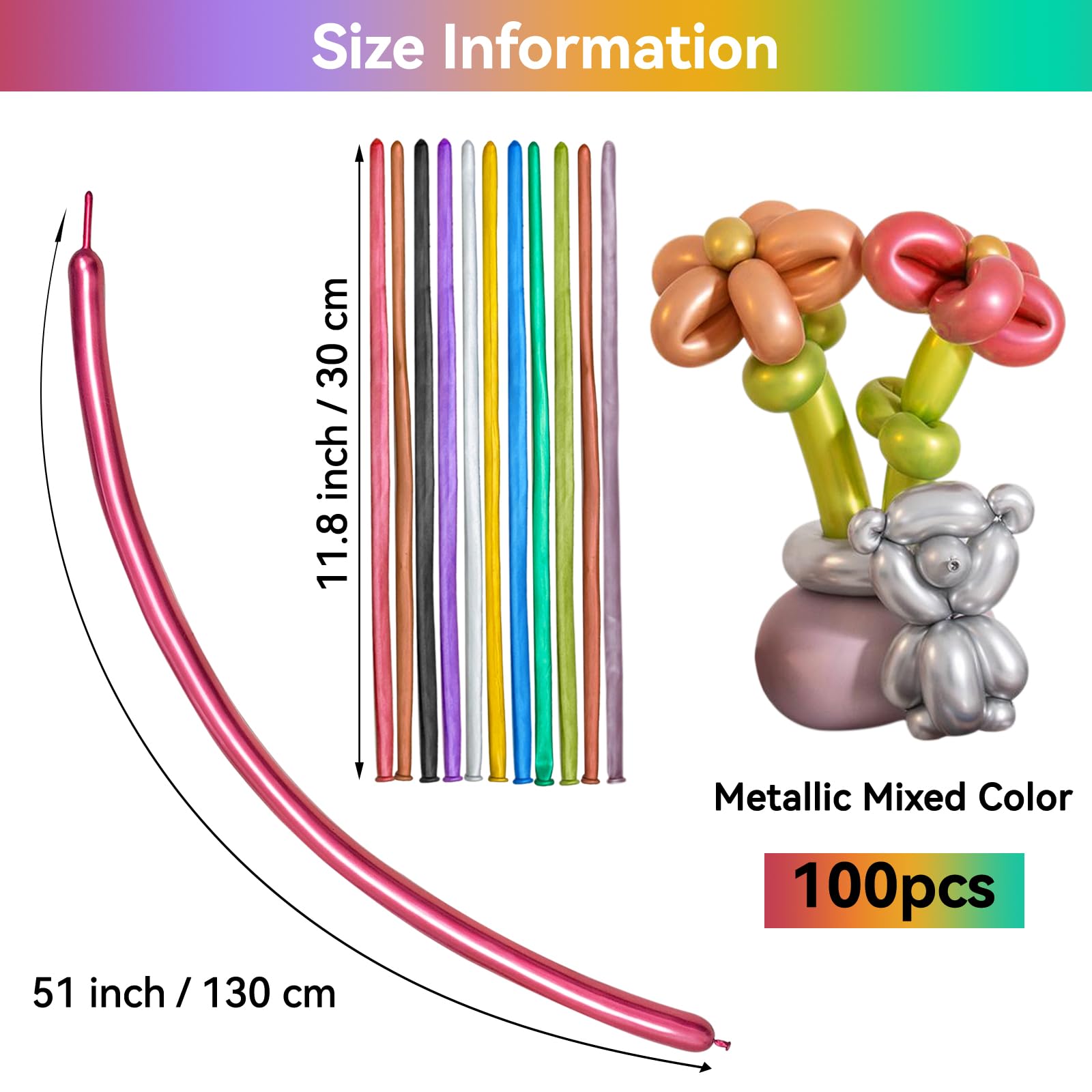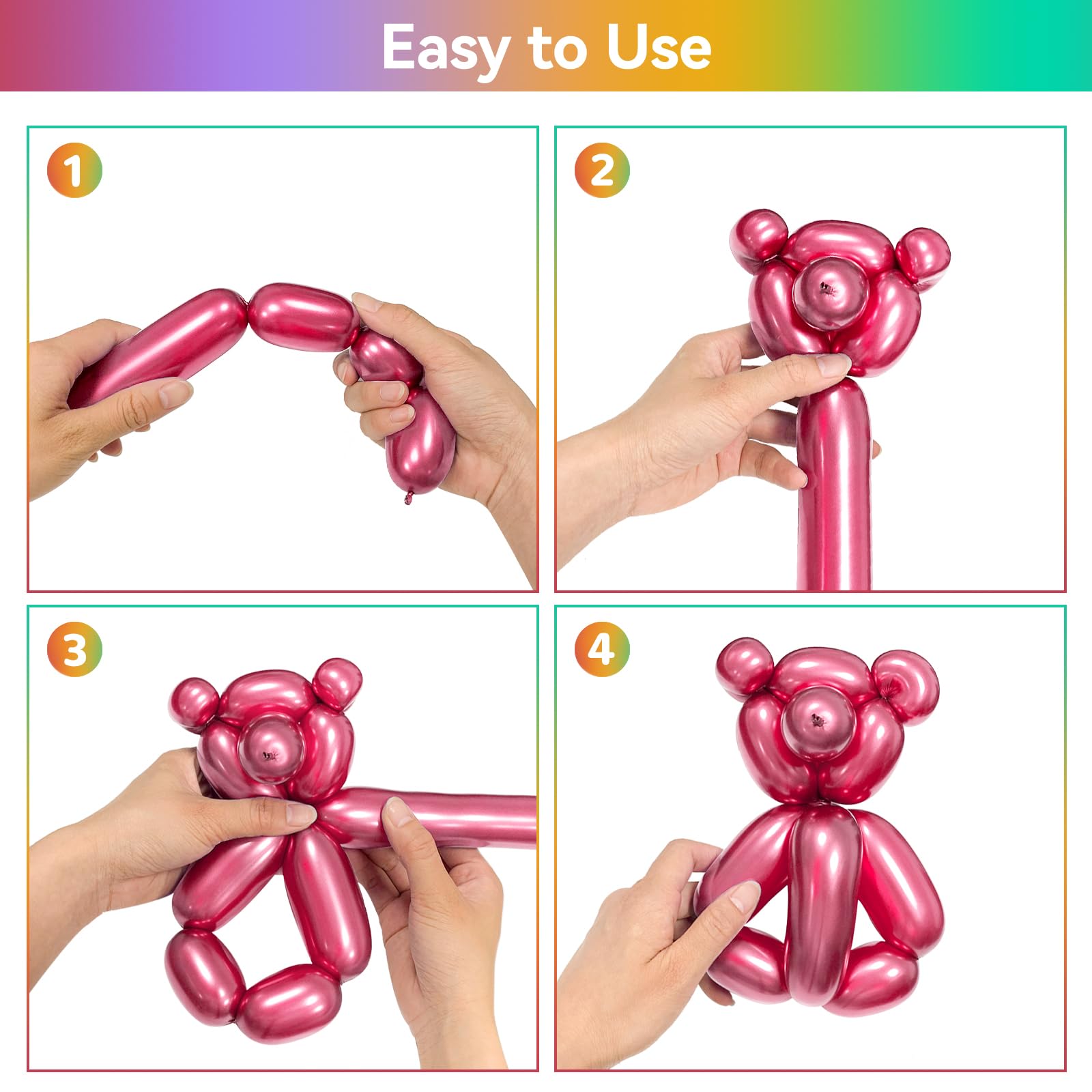THE PACKAGE INCLUDES: 100 long balloons for balloon animals,can be shaped into any interesting sculpture or animal for professional balloon twisters and artists.