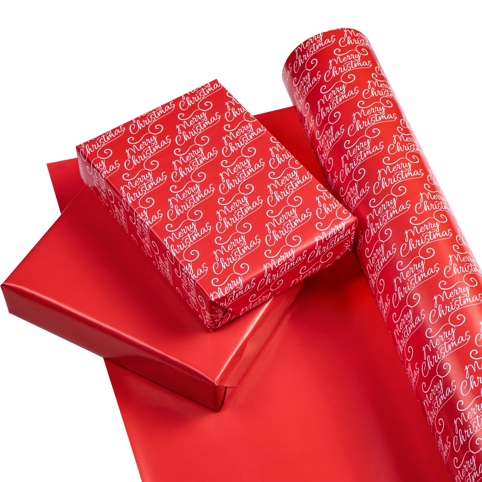 Reversible Design: "Merry Christmas" lettering printed on one side, solid red printed on the reverse. Two different designs make unique and varied gift presentations easy.