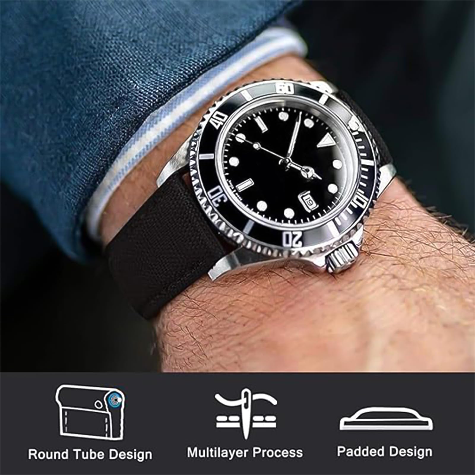Premium Materials: Ritche sailcloth watch straps adapts premium nylon weave sailcloth. It is soft breathable and durable. The bottom of this watch band adapts reinforced matte lining and against the skin and minimizes slipping while providing ideal comfort. The buckle part of this sailcloth watch strap is brushed, which adds a sense of fashion to the strap.