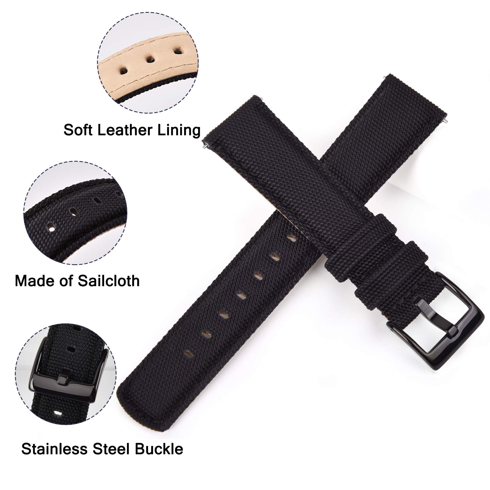Before Order: Ritche sailcloth watch strap is designed to fit wrists 6.4'' to 8'' which covers most of the population, but the geometry of the watch may affects fit. Quick Release design saves your time that makes it fast and simple to install and replace your watch band. Quick release spring bars are included with and integrated into the band, so it's important that your watch's lug width matches exactly.