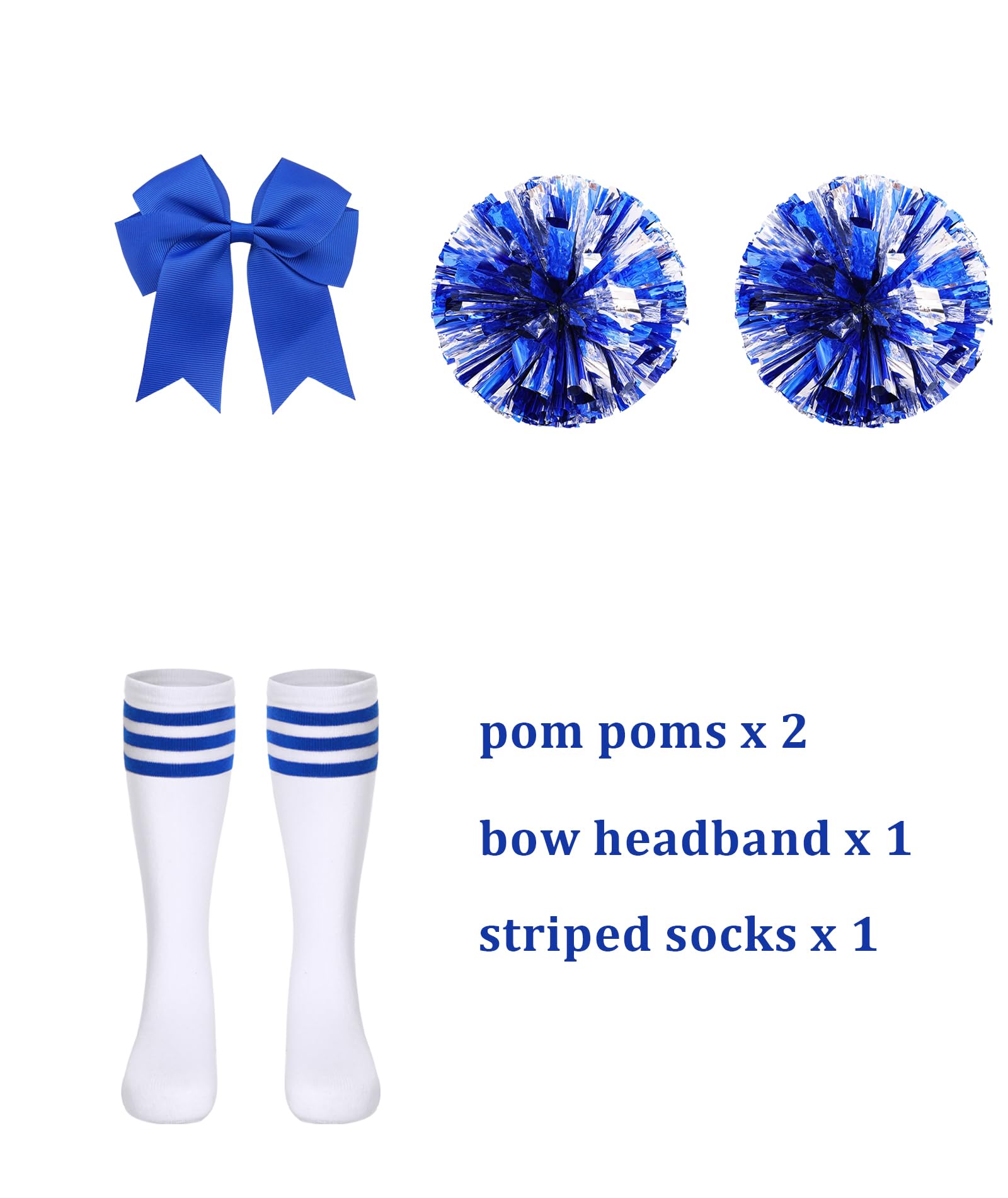 Coordinated Sparkle Accessories:Adds matching hair bow and striped socks that enhance overall uniformity while providing authentic cheerleader aesthetics.