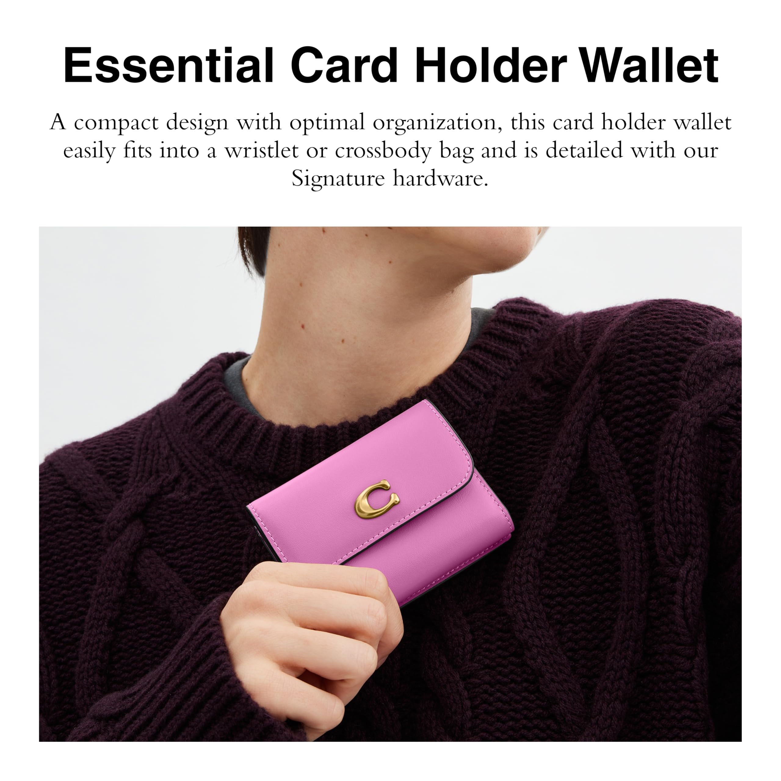 Editor's Notes: A compact design with optimal organization, this card holder wallet easily fits into a wristlet or crossbody bag and is detailed with our Signature hardware