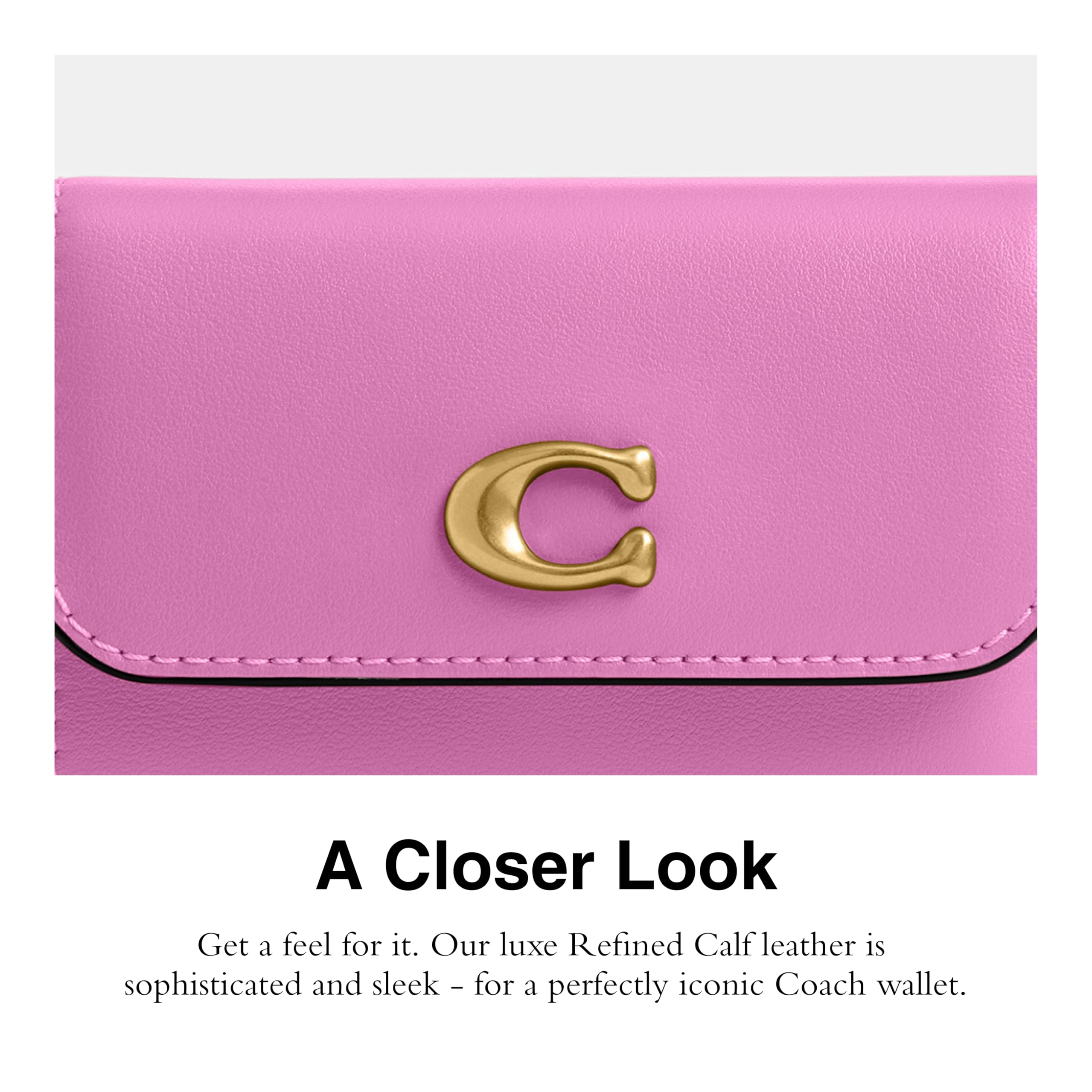 Refined Calf Leather: Get a feel for it. Our luxe refined calf leather is sophisticated & sleek - for a perfectly iconic Coach wallet