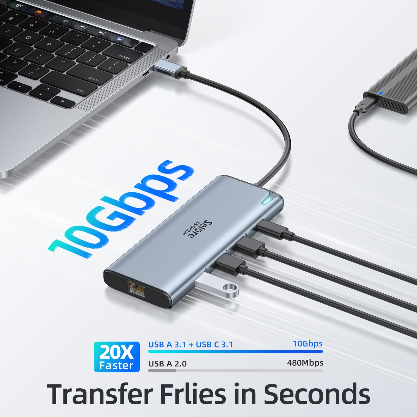 【10Gbps Efficient Data Transfer】Selore 3 USB C 3.1 Ports hub supports up to 10Gbps data transfer speed. Transfer 1GB of files in 1 second, quickly and efficiently transfer and backup data for your external devices. 20X faster than USB 2.0