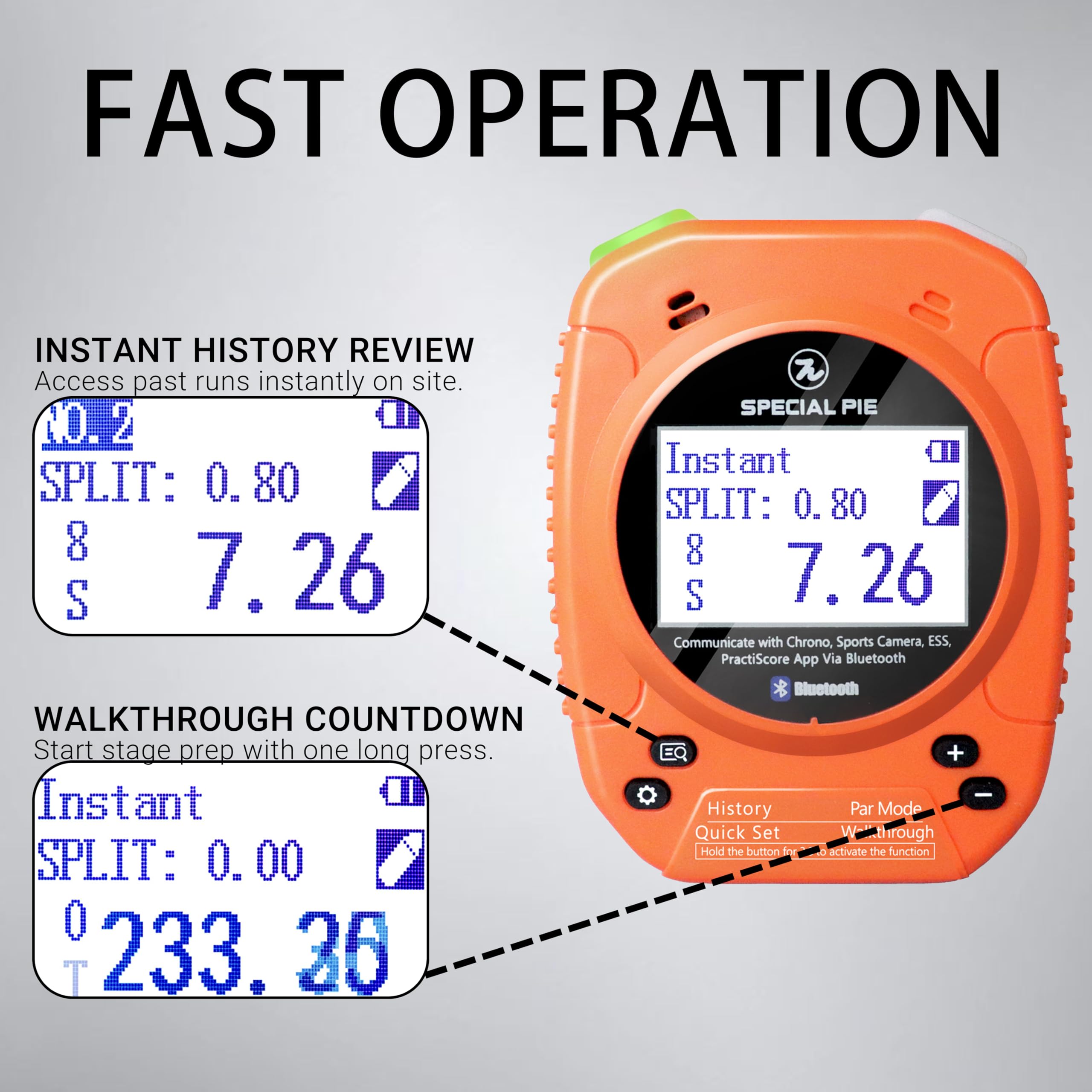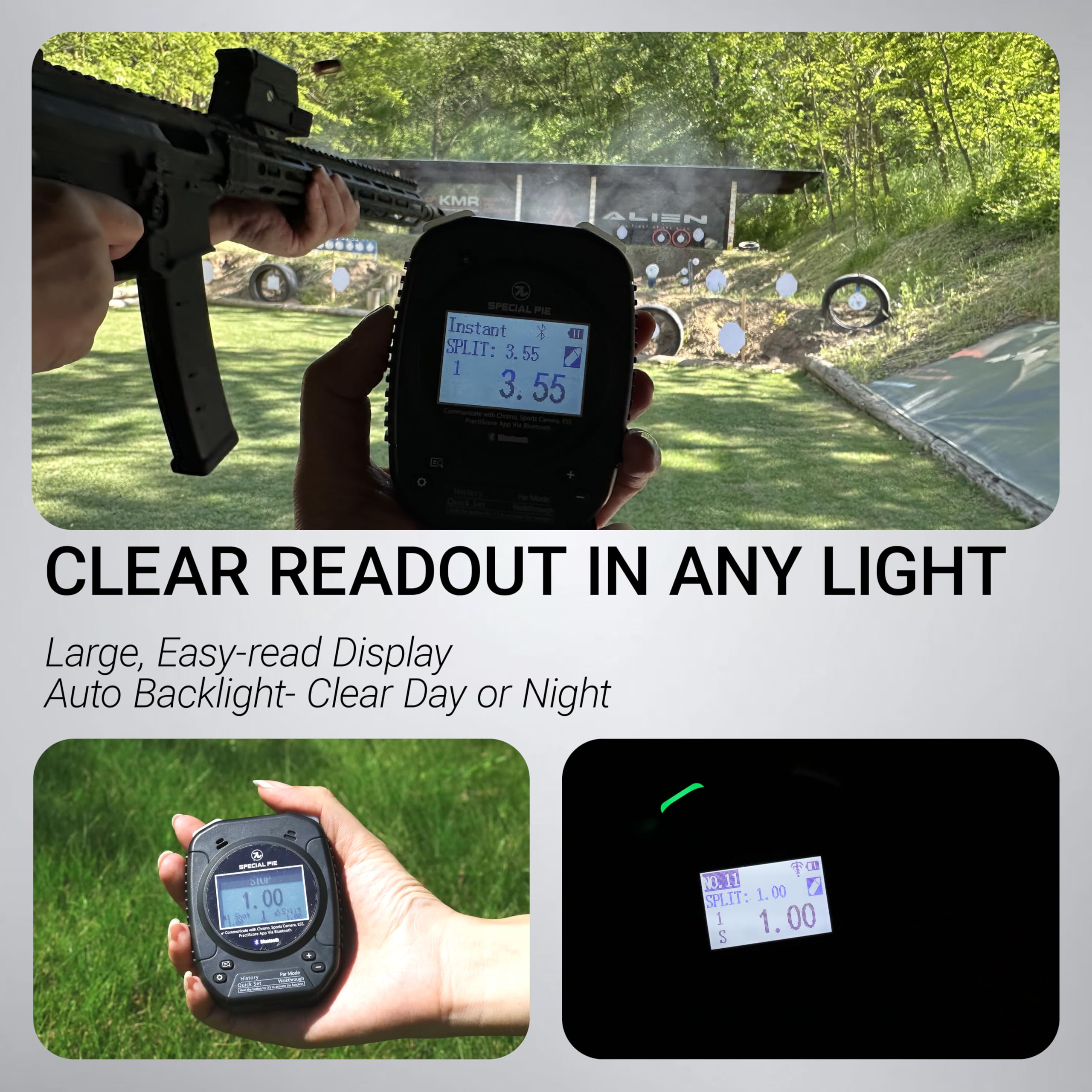 Smart Caliber Detection: The smart acoustic sensor accurately records shots from dry-fire, BB, 9mm, up to larger calibers. Advanced echo-filtering algorithms ensure every shot is captured reliably in any environment, preventing missed or false split times and making training consistent and precise.