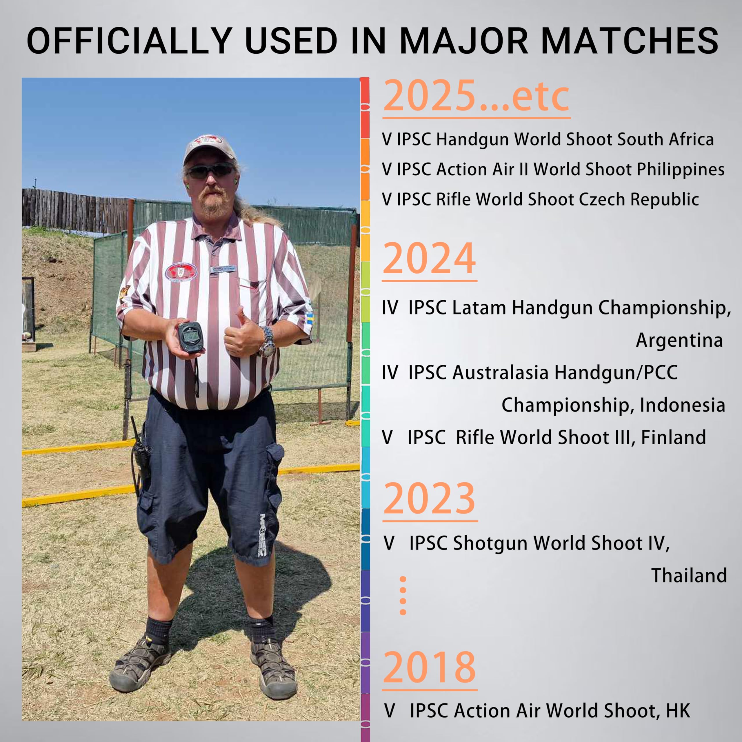 IROA Partnered Competition Timer: Official IROA partner product, repeatedly used in IPSC Level IV & V matches. Trusted by Range Officers and competitive shooters worldwide for exceptional accuracy, durability, and match-ready performance under real competition conditions.