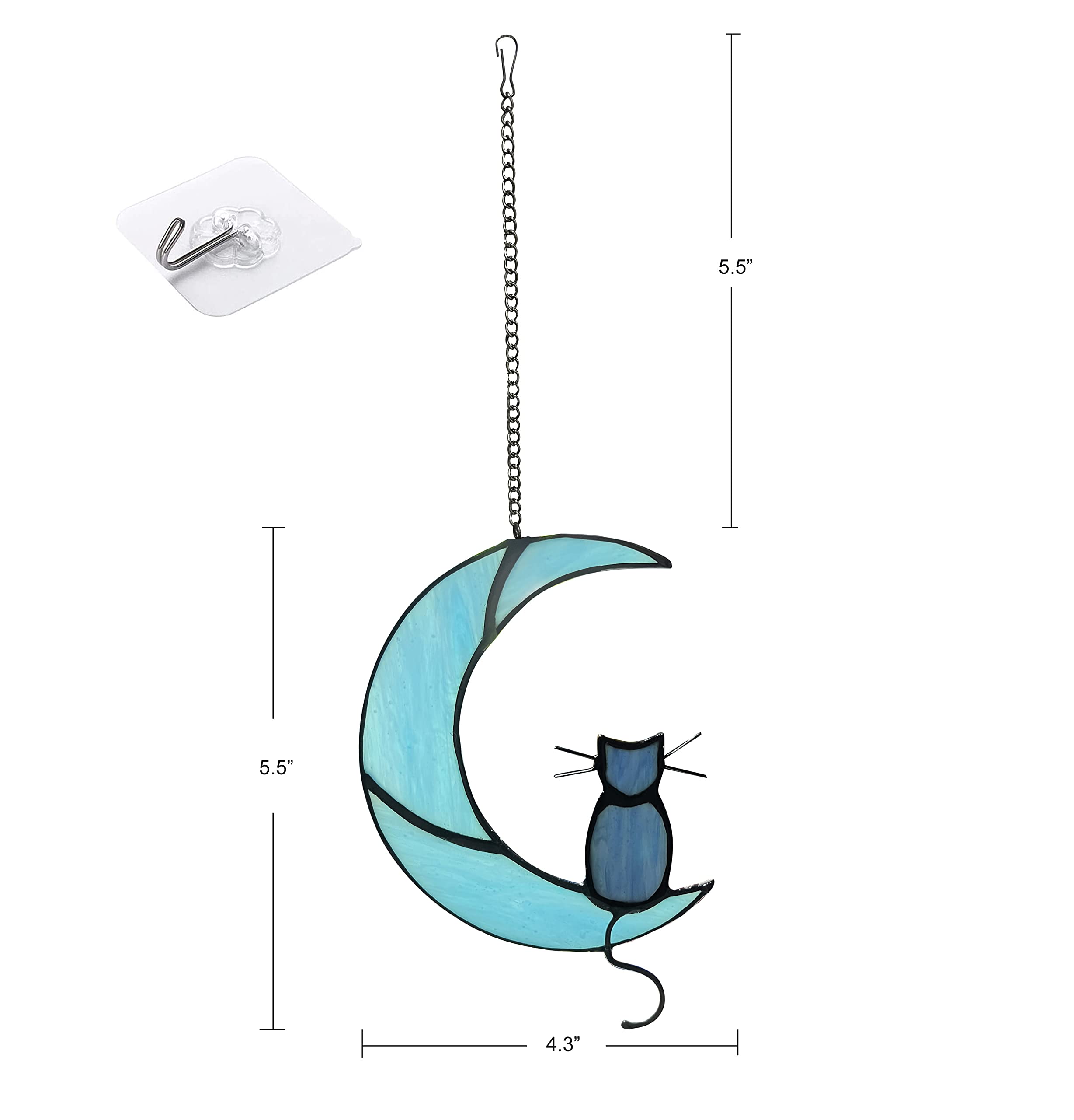 Gray Cat On Blue Moon are easy to hanging on window/wall/garden/restaurant/cafe/bar/office etc. It can be memorial supplies or great gift for lover. Cute cat bring you happiness every day. condition:100% brand new material:Stained glassl size:approx 5.5" X 4.3" color:White/black
