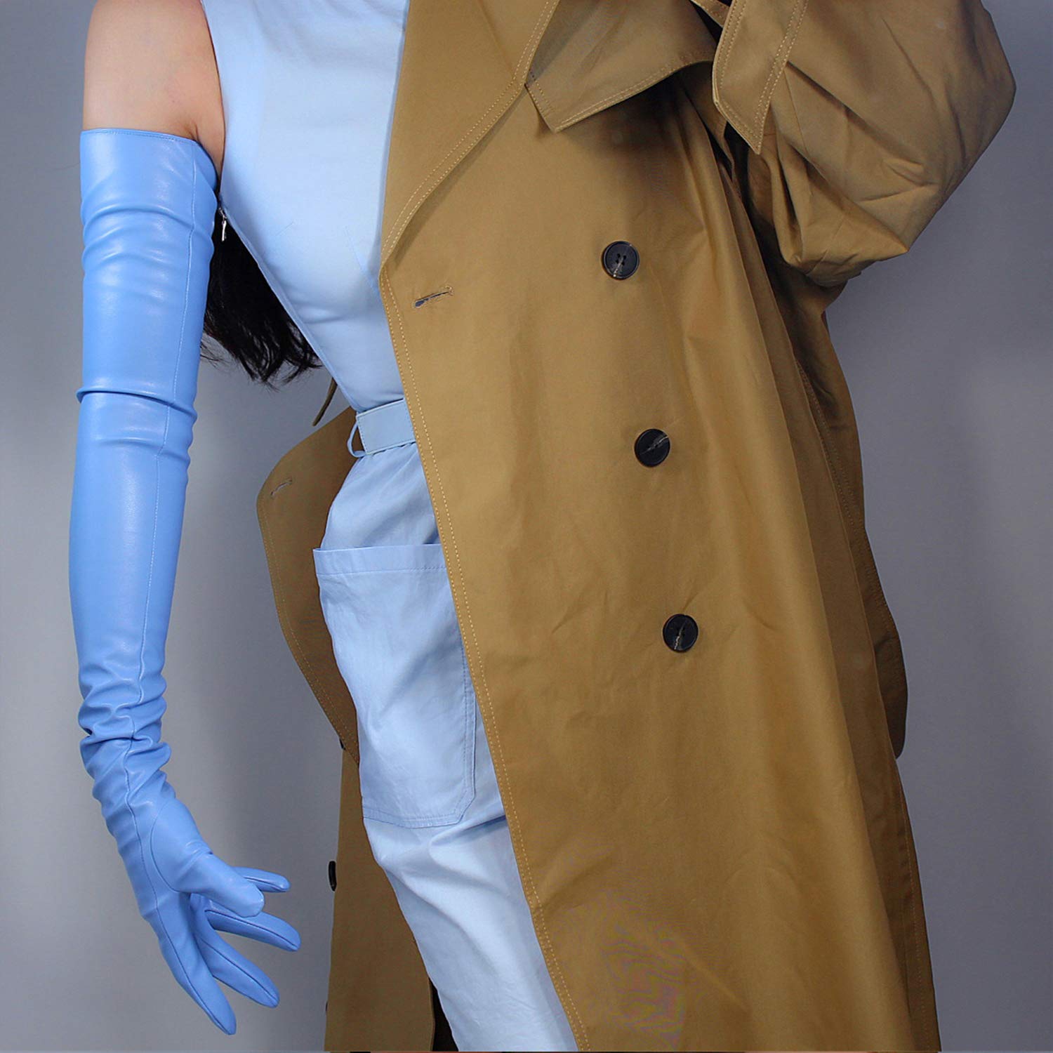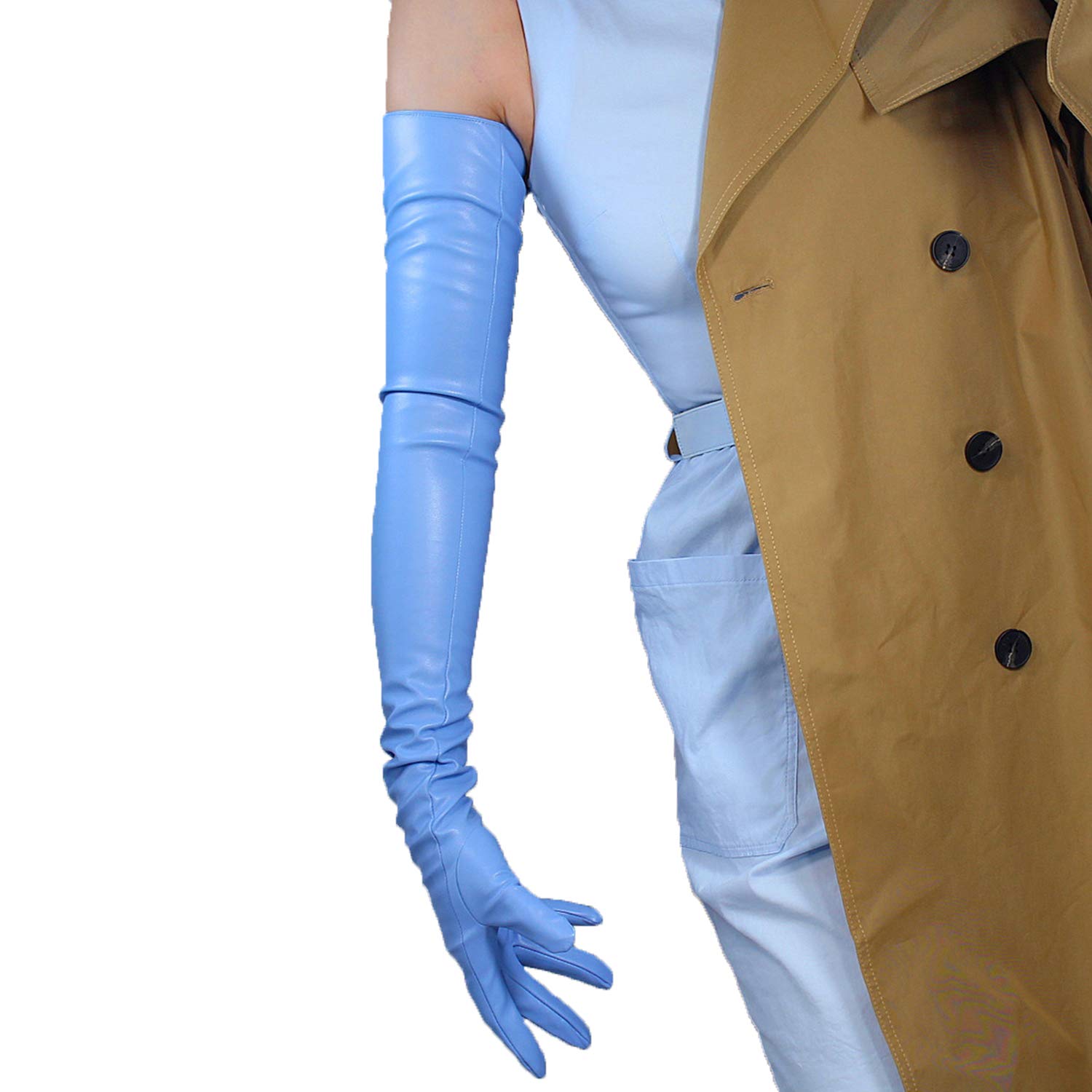 Material: Faux Sheepskin Leather PU,Soft and Unlined.Color: Light Baby Blue.
