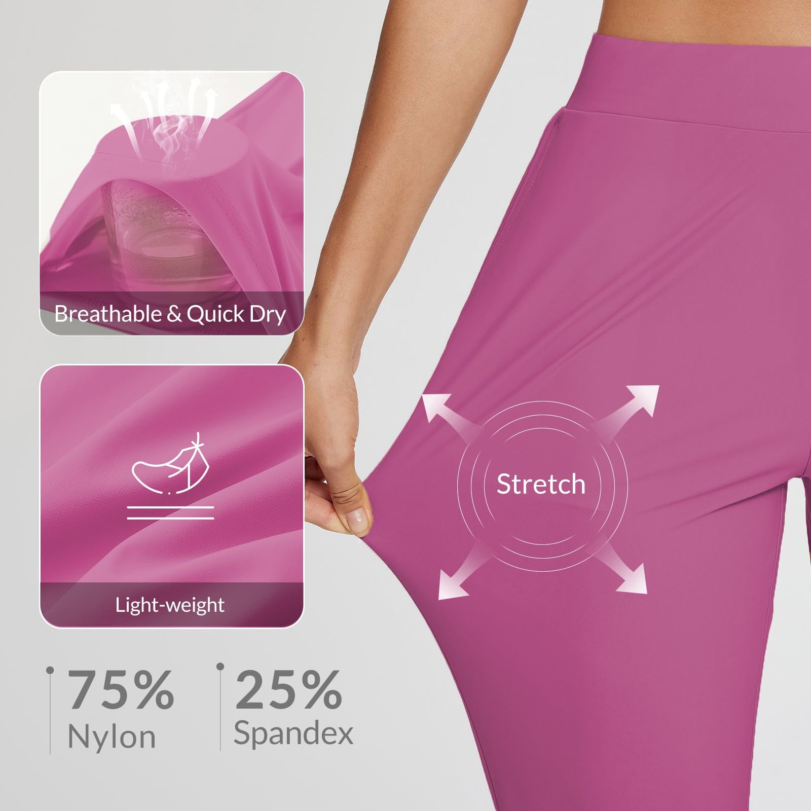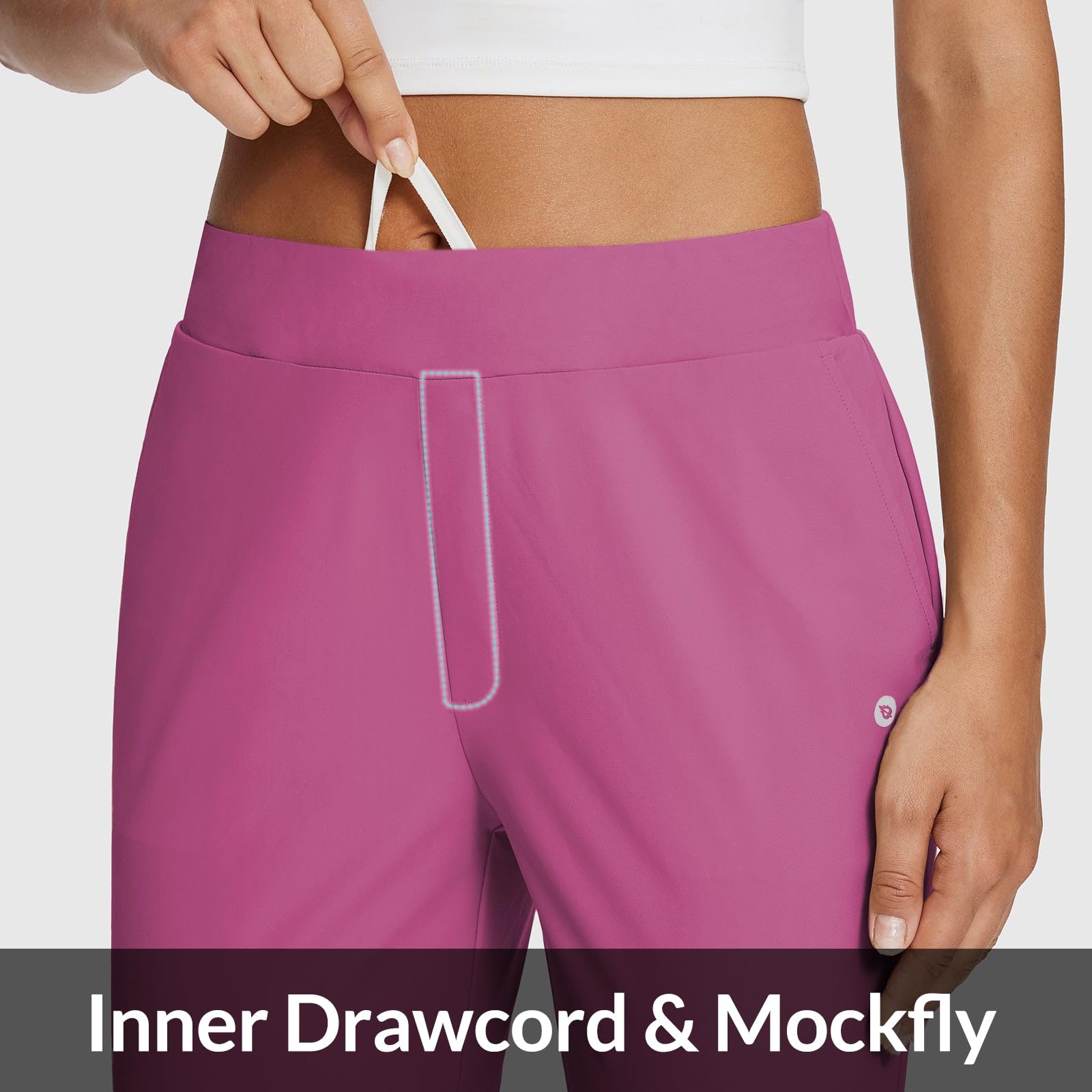 Elastic Waistband & Inner Drawcord: The tummy control high design prevents waistband slipping down or rolling in any formal occasions or travel. Built-in flat drawstring and rear elastic waistband is inclusive for different figures.