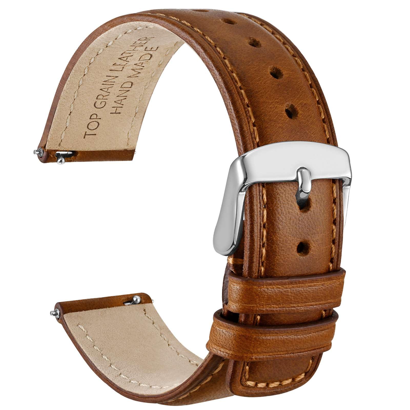Watch Strap Material: Made of top grain leather in distressed workmanship and the lower layer that touches the wrist is comfortable suede calfskin lining, with classic tone to tone stitch and solid stainless steel buckle. These bands strike the perfect balance between durability and style, making them suitable for both casual and formal occasions