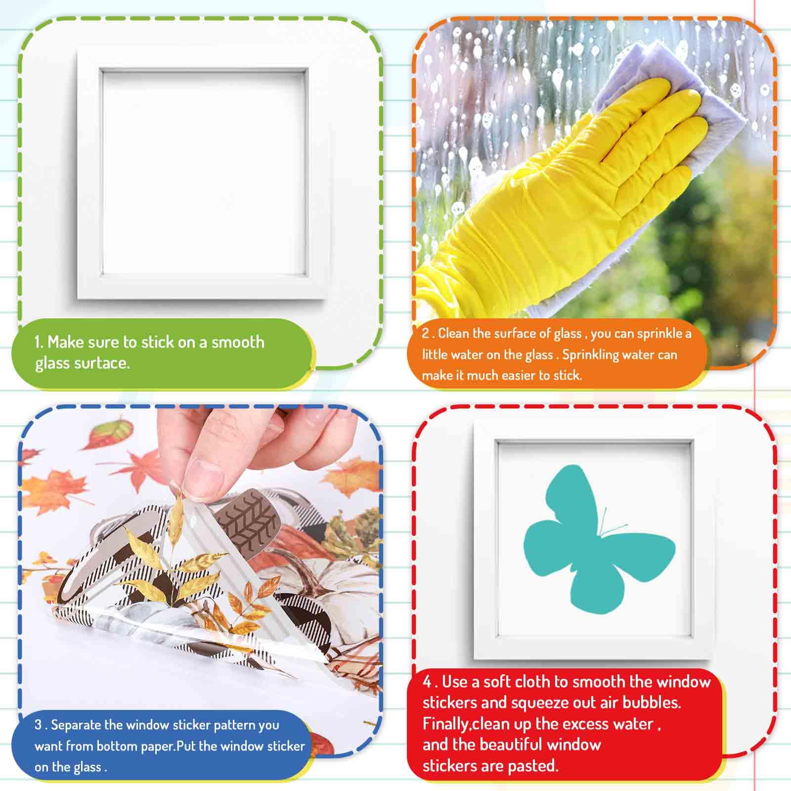 GOOD-QUALITY MATERIAL: Made from durable PVC material. Before use, you can spray some water on the window, so that the window clings can be more firmly attached to the window, easy to peel, leaving no traces when it is torn off, and the window clings can be reused.