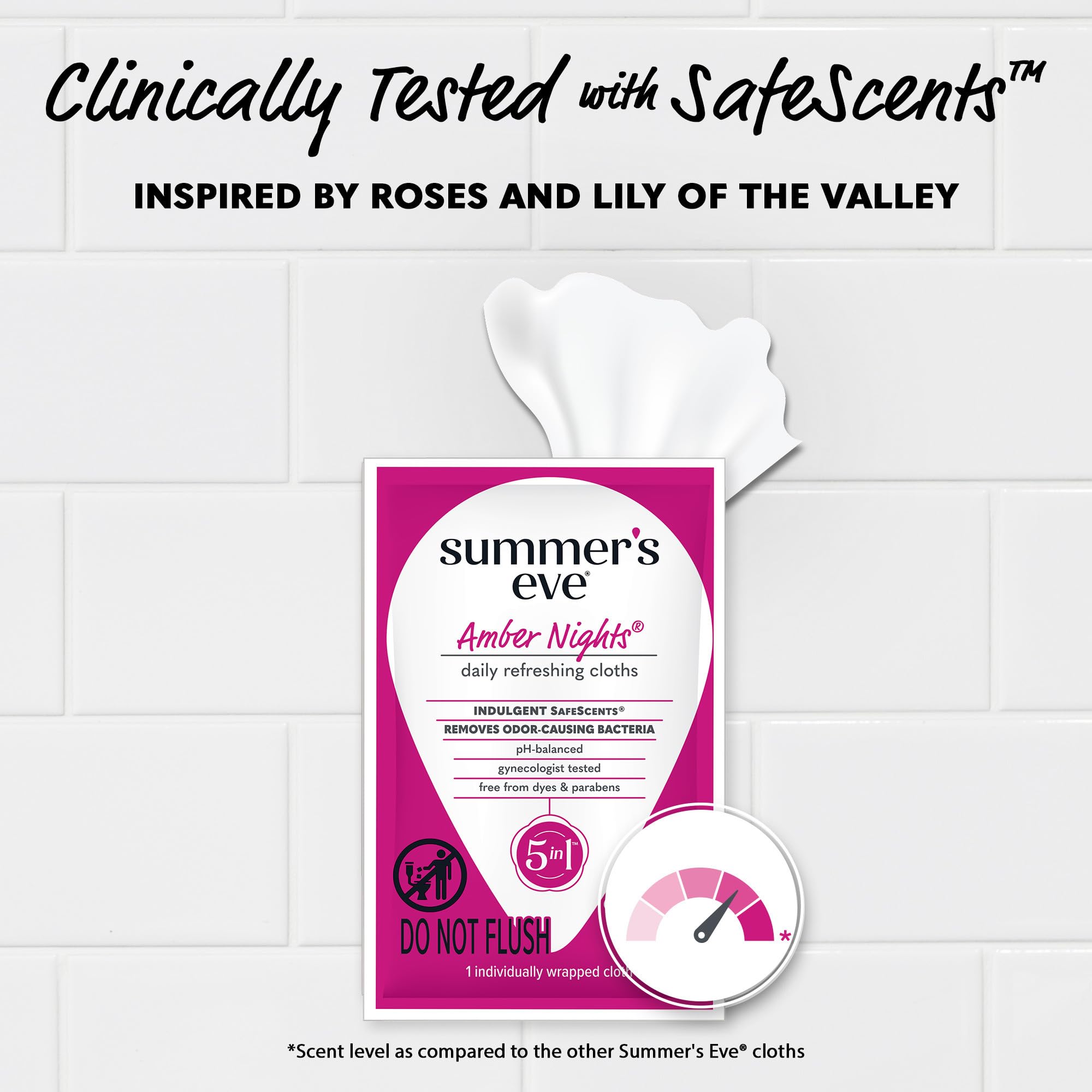 Summer's Eve Amber Nights Daily Refreshing Feminine Wipes remove odor-causing bacteria