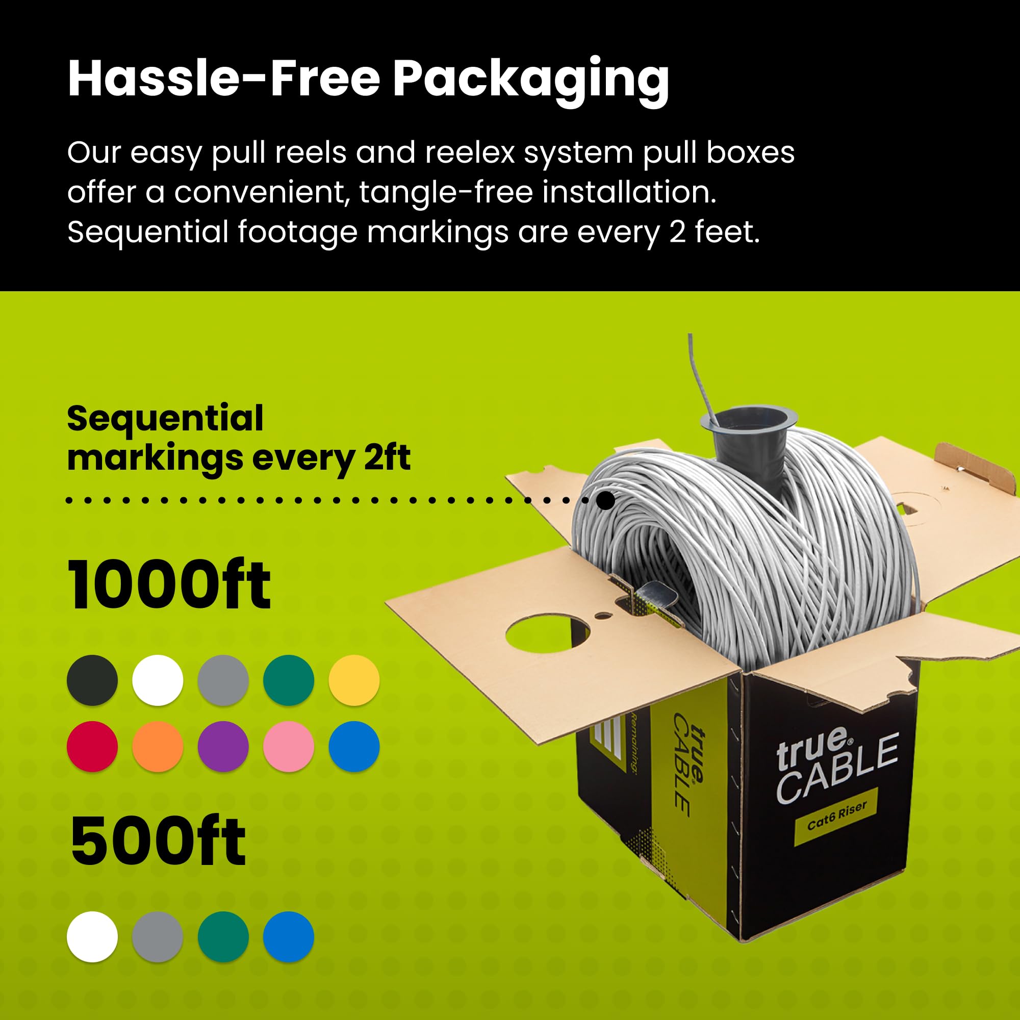 [✓ Certified by trueCABLE] Our data cables have been tested with a DSX-8000 Versiv CableAnalyzer and are in compliance with ANSI/TIA 568.2-D standards, RoHS-3 compliant, and cETLus certified. Backed by our FOREVER WARRANTY. Compatibility & performance tested with trueCABLE RJ45 Connectors - B07Y3DDLGW and B088KWF9CW.