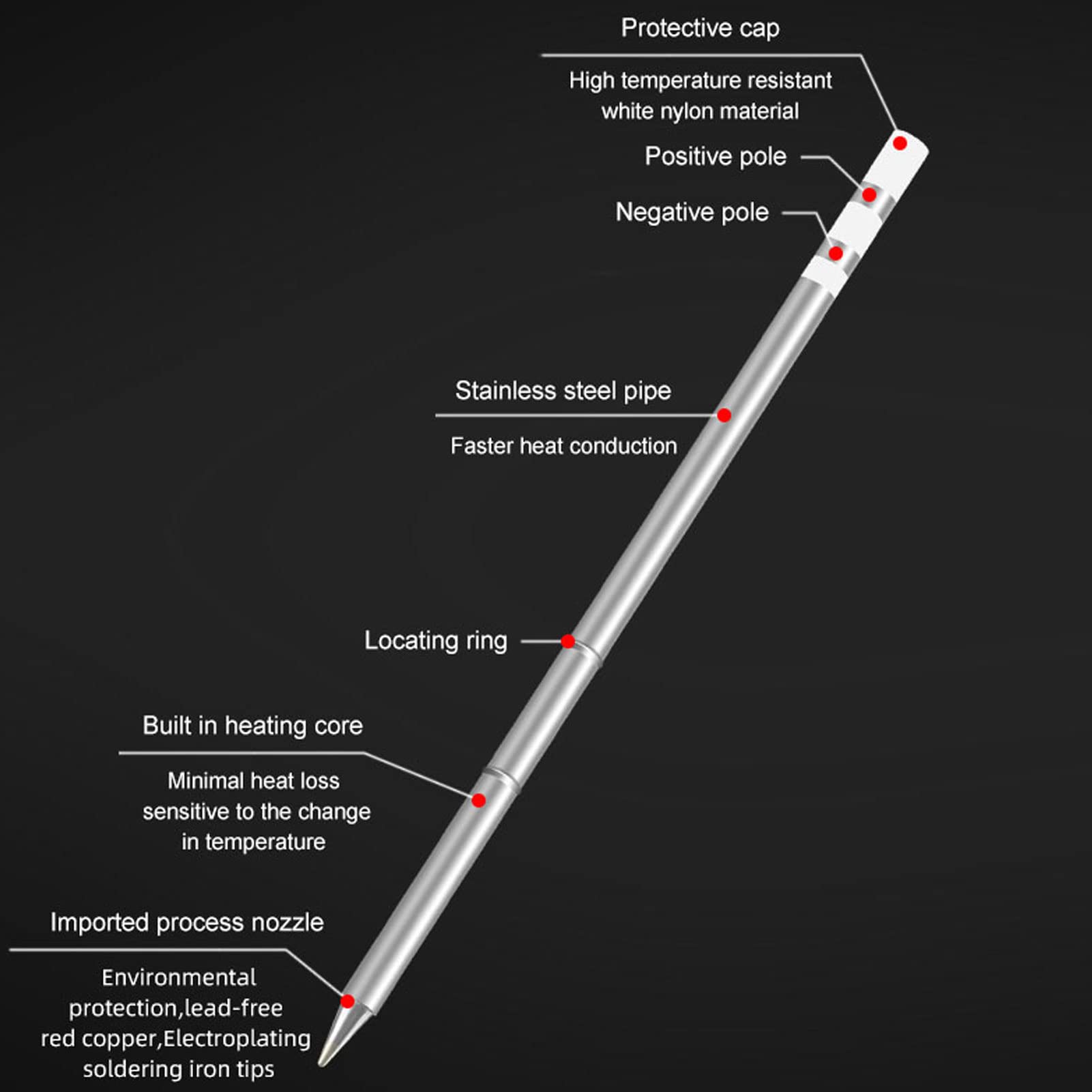 Stainless Steel Housing: The stainless steel housing can effectively reduce heat loss, making the soldering iron tip ideal for long term using.