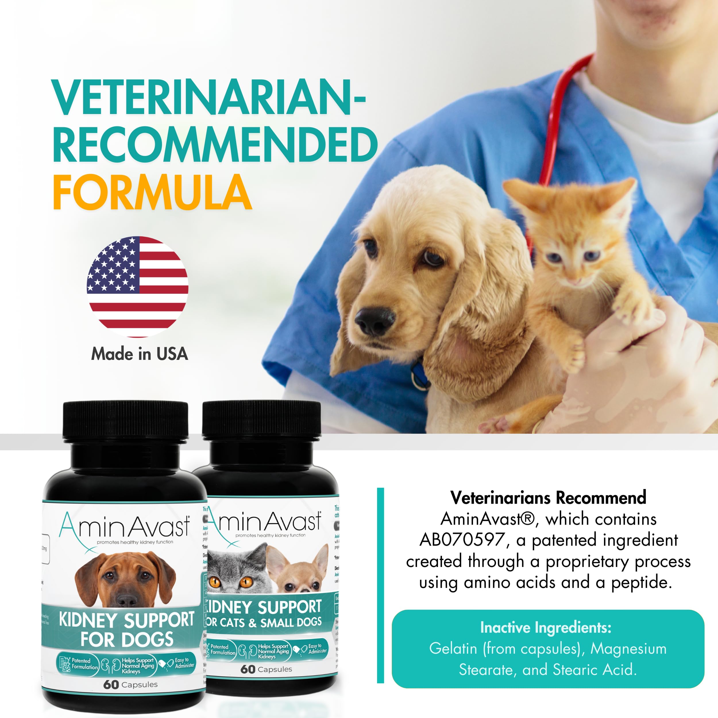 Daily Support For Renal Health; our proprietary blend of amino acids and a peptide can help support healthy renal function in cats and dogs. No side effects have been reported in cats that have been using AminAvast for both short-term and long-term use
