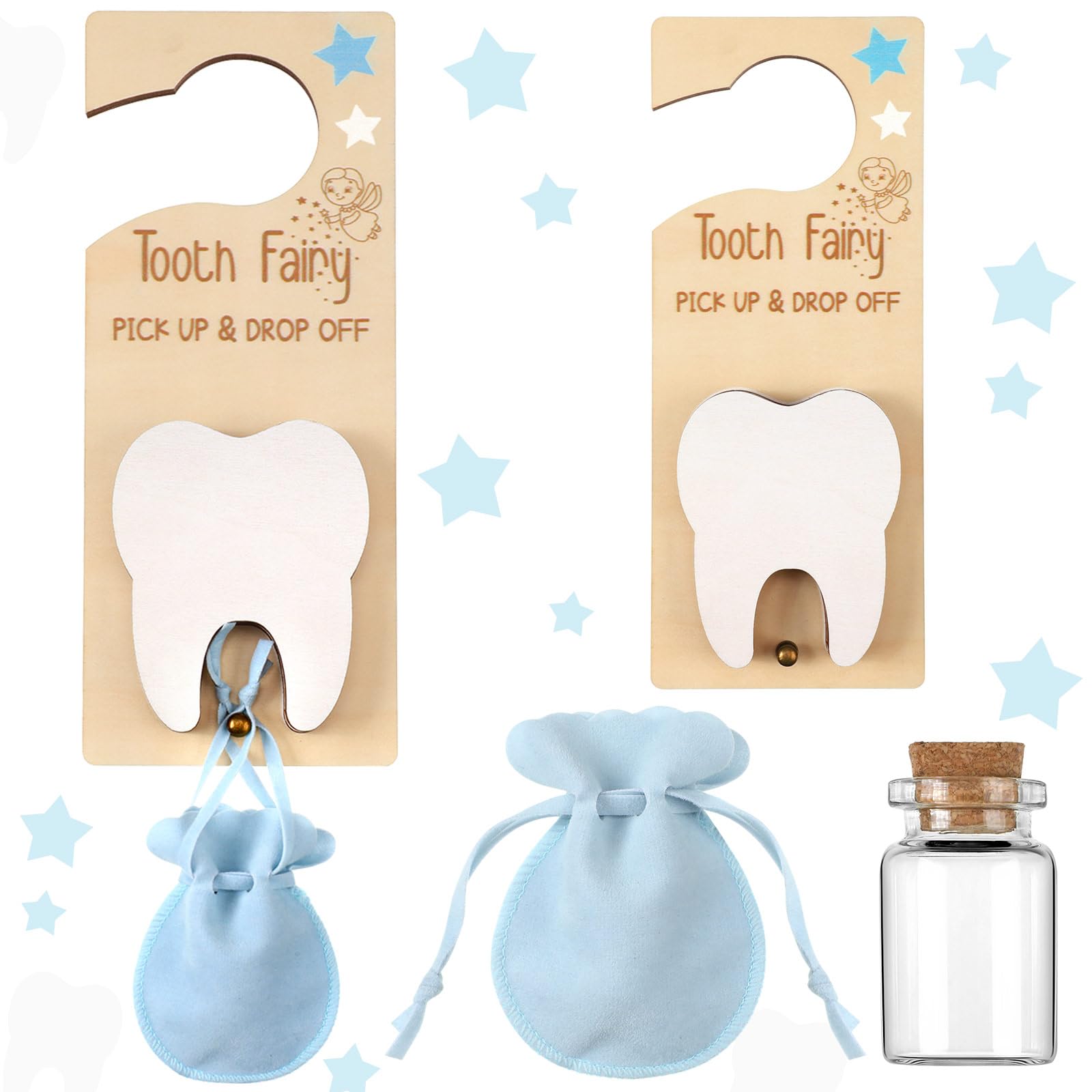 Durable Material Construction: this tooth fairy door hanger is made from wood material, offering durability and strength; The bag is crafted from burlap, offering an exquisite feel while ensuring the safe storage of your child's precious teeth; The bottle is made from glass and features a wooden cork, contributing to the set's overall classic design