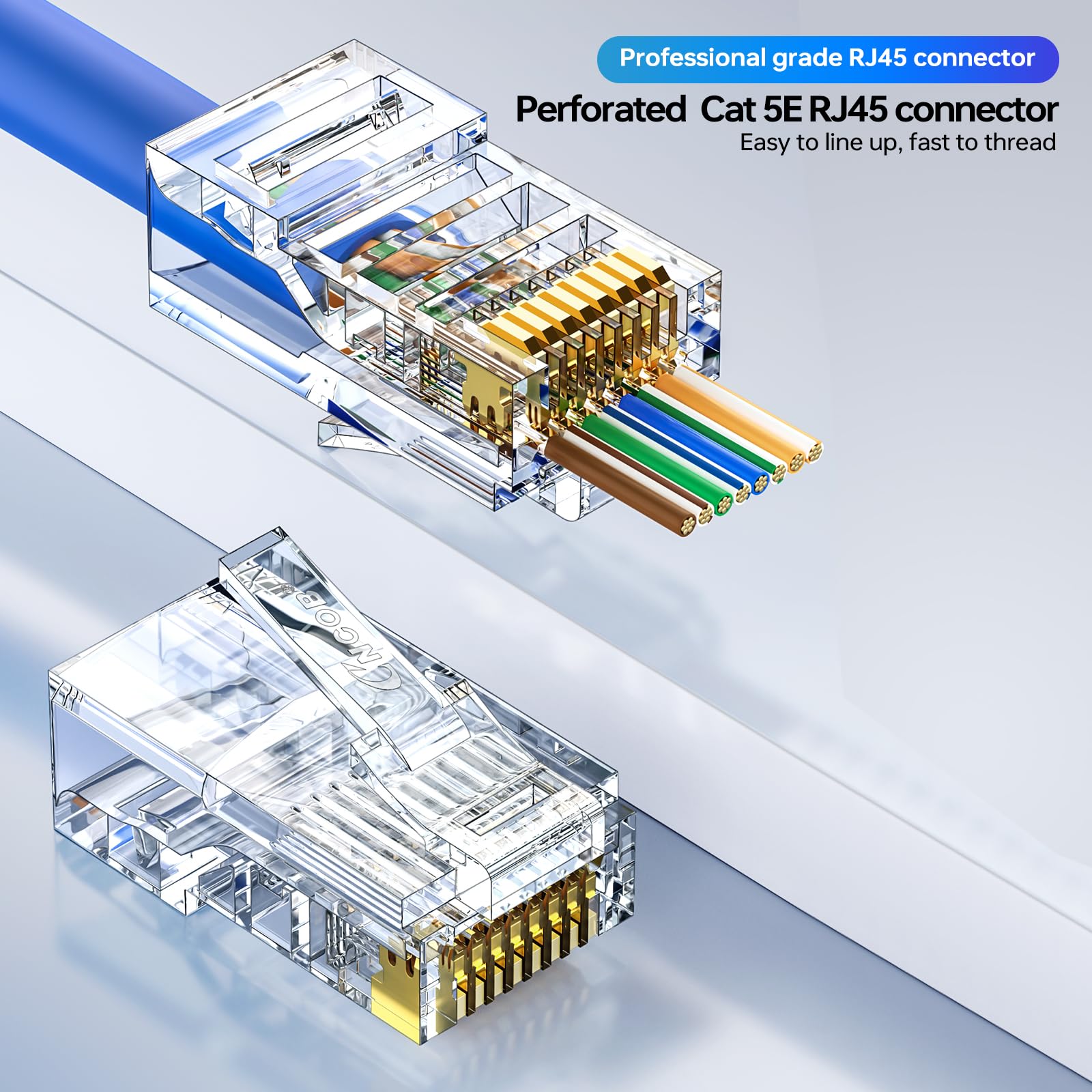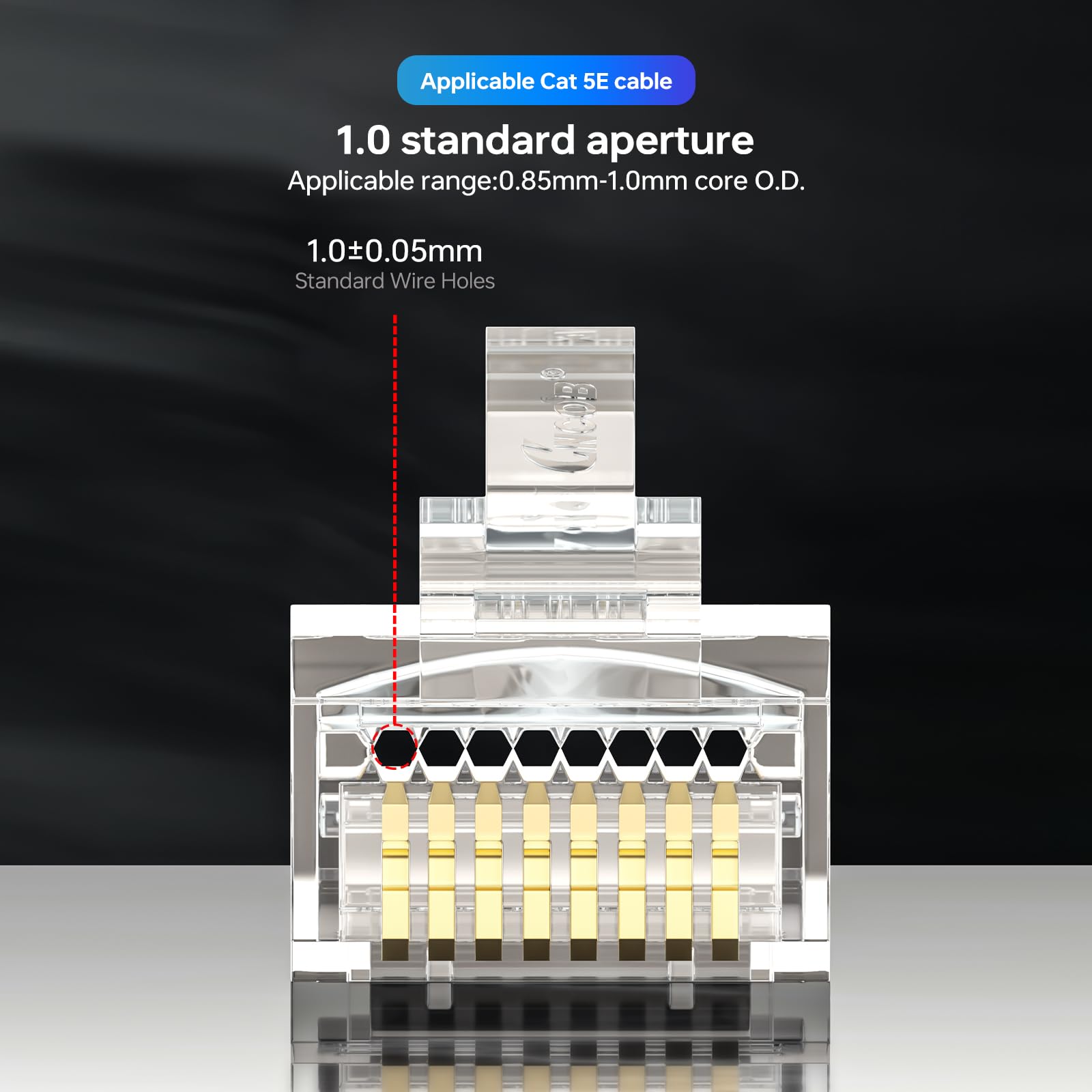 [ Wide Applicability ] The pass through connector suitable for Cat5e unshielded network cable, wire hole diameter 1.0mm, suitable for 24-26AWG 24 round cable. Provide more stable and fast transmission for your home decoration wiring, unobstructed gaming and engineering work. Adapts to all RJ45 standard interface devices.