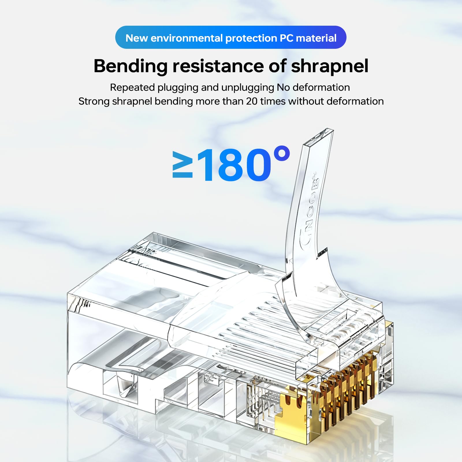 [ Flexible and Bending Resistant ] Tough and bend-resistant shrapnel material makes the rj45 end be snaps in and out of ports 750 times for easy movement and frequent use. Shrapnel bending 20 times 180 degrees without deformation.