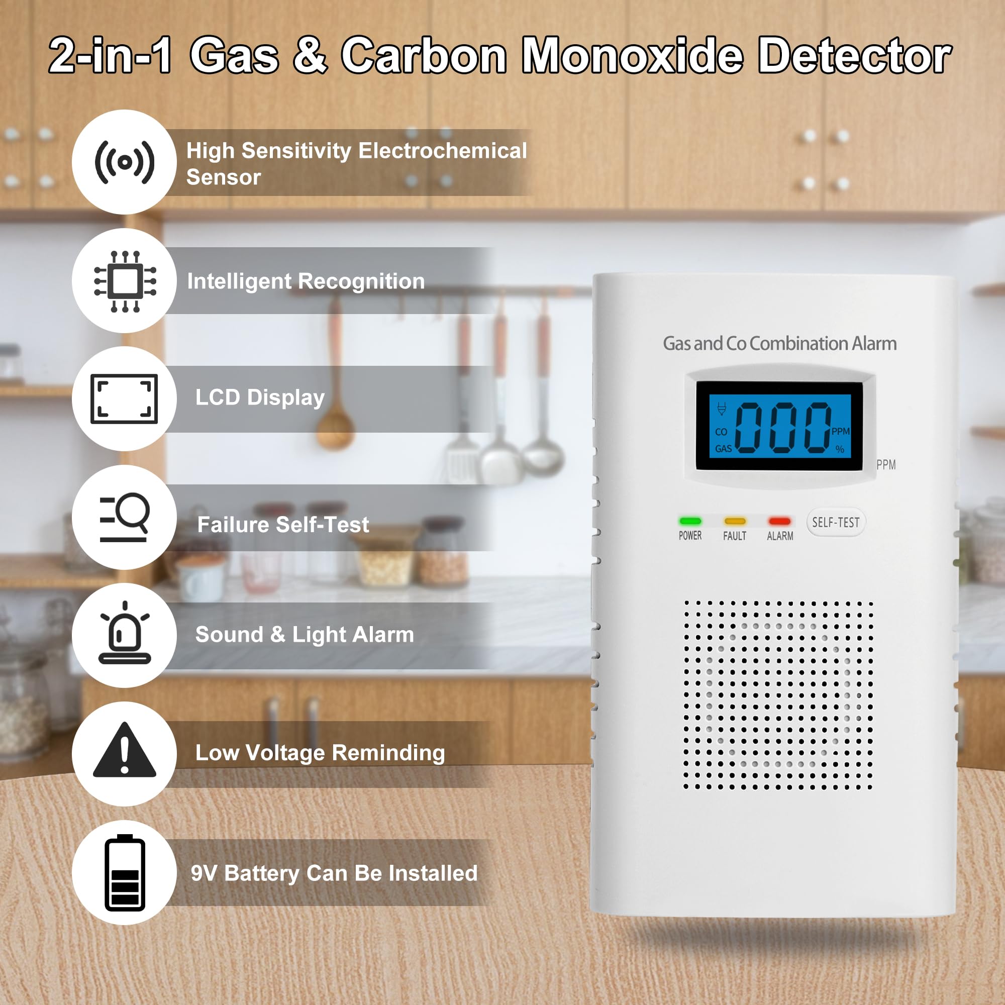 【2-in-1 Detection Function】Can detect carbon monoxide gas and combustible gas; combustible gases include LNG, LPG, propane, methane and etc