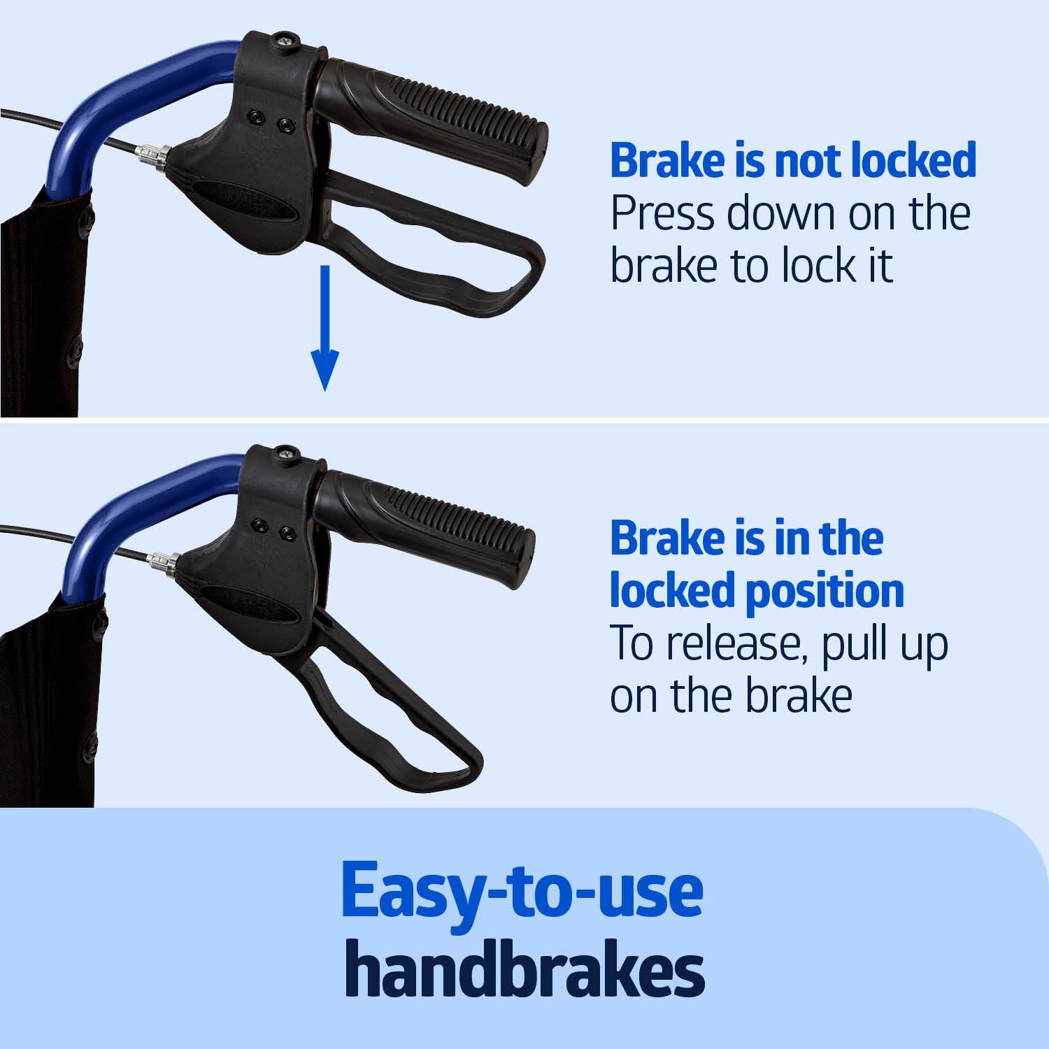 ENHANCED SAFETY FEATURES: Easy-to-squeeze hand brakes and rear-wheel manual locking brakes allow for safe and secure transfers