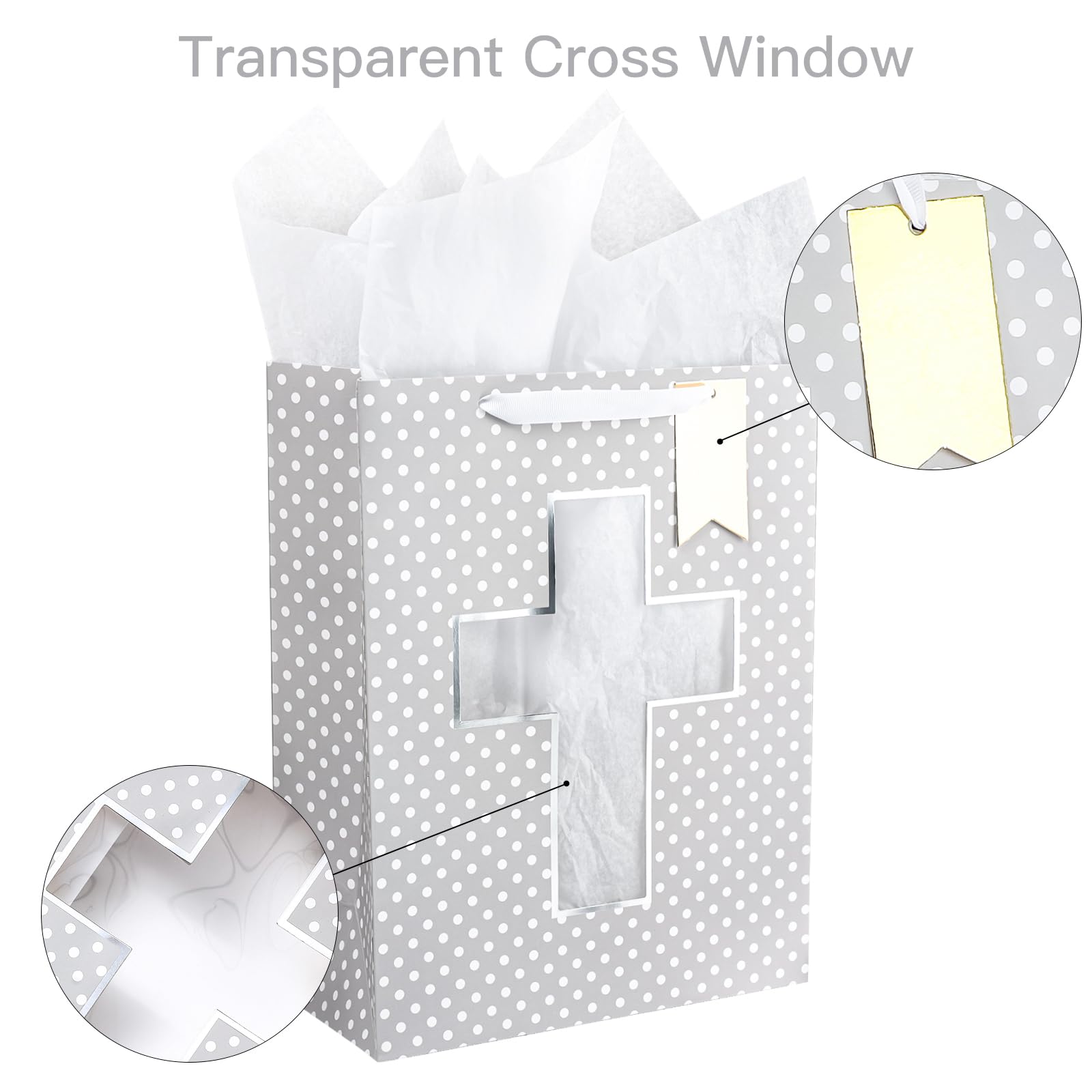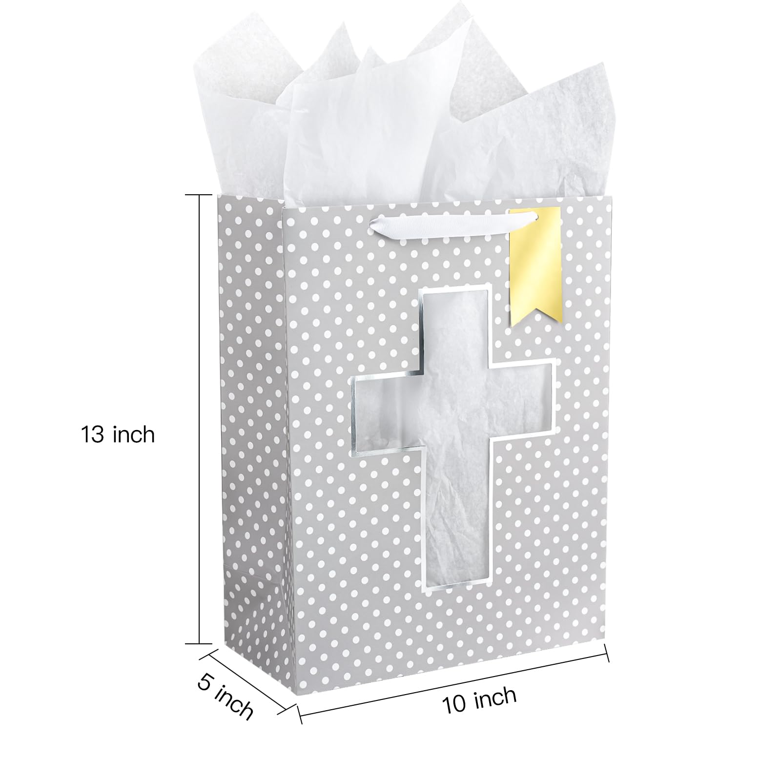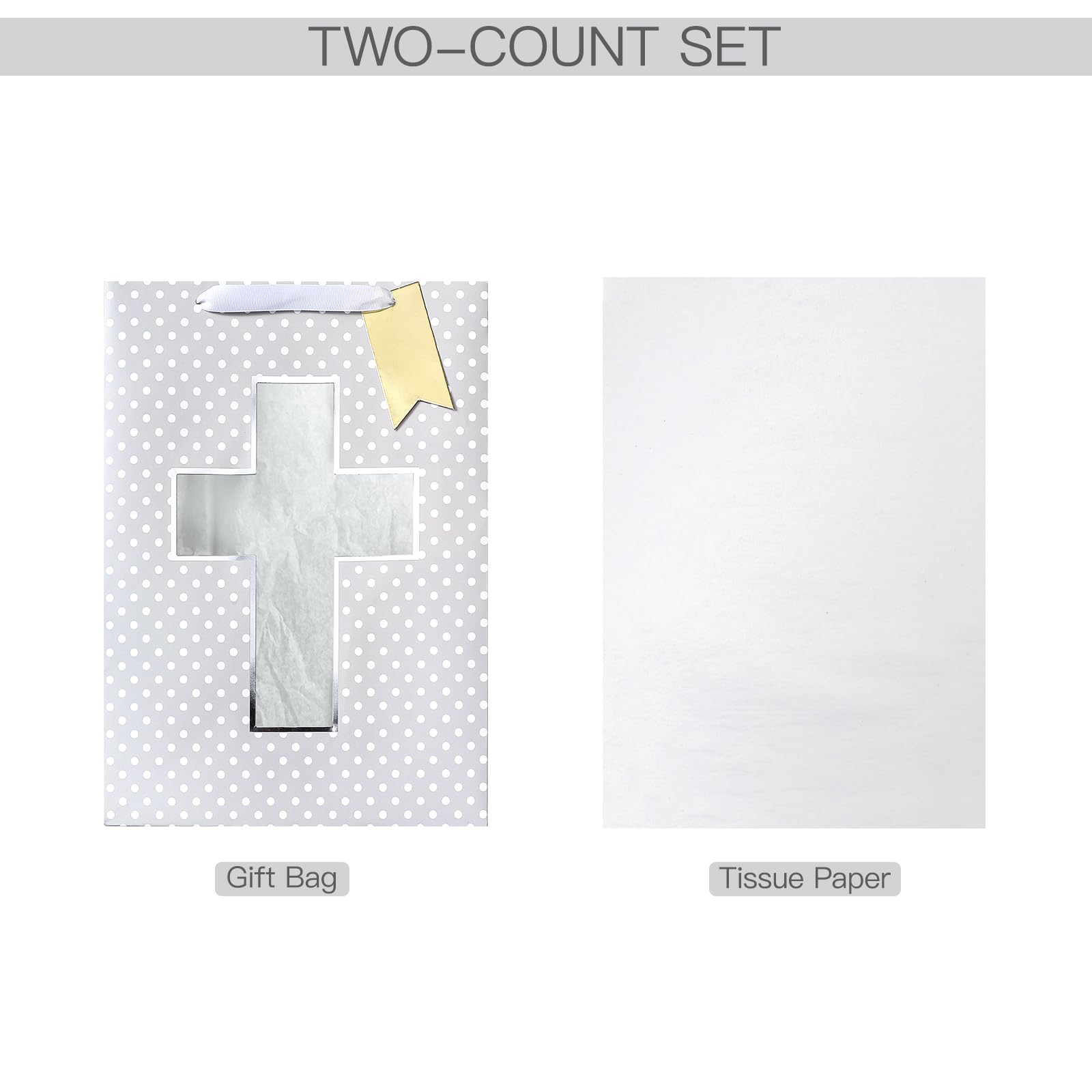 Package: This three-count set of assorted gift bag contains 1 large bag, 2 tissue paper and 1 tag, great for all kinds of religious needs.