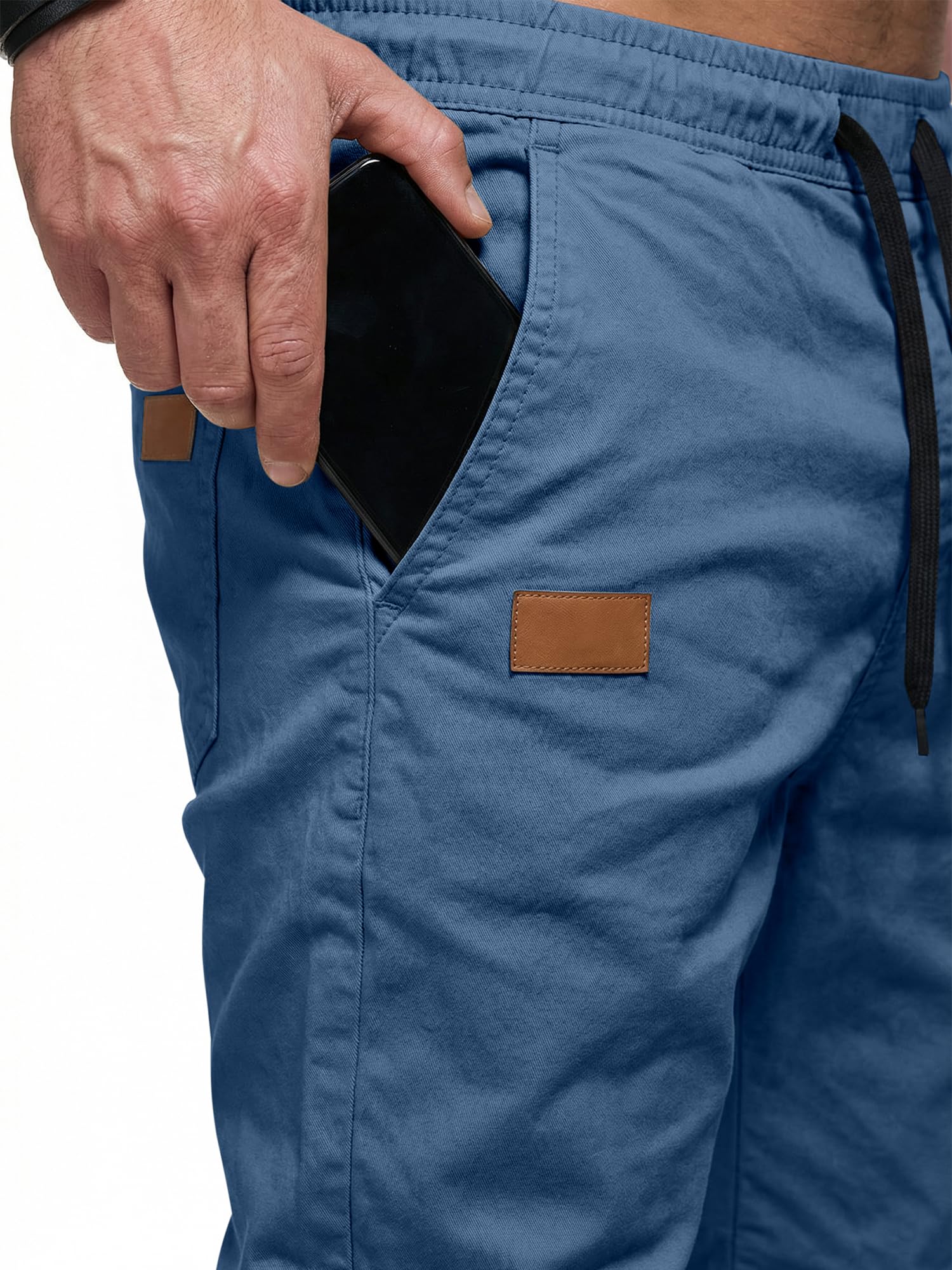 Practical Pocket Design: Features deep side pockets and classic back pockets to securely hold your phone, keys, or wallet, accented with a stylish leather patch detail for a modern look.