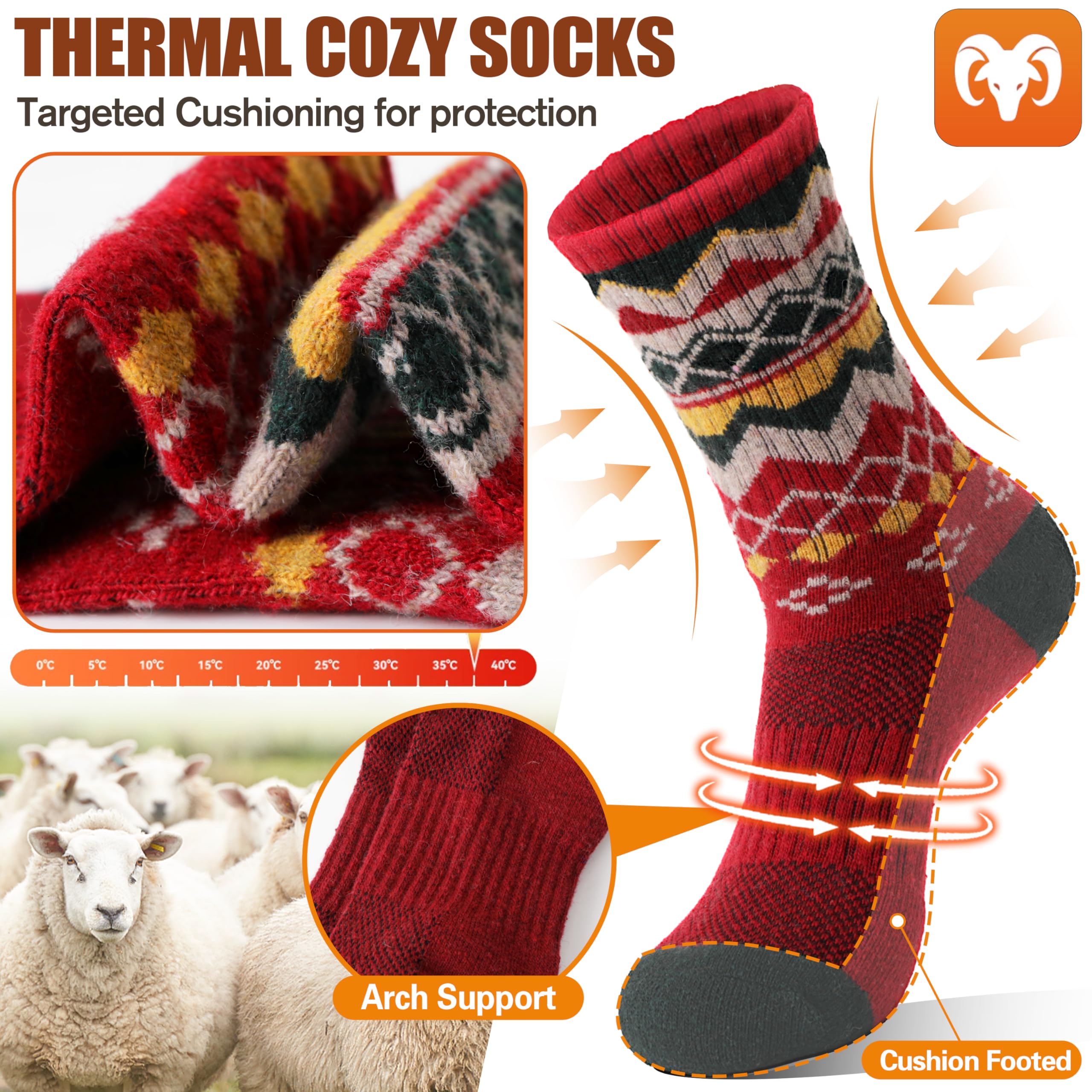 ELASTICITY - These warm hiking socks for womens have high elasticity and arch stripe,which can enhance the blood moving ,relieve symptoms varicose and keep socks stable.They can greatly improve your comfort in hiking , running , walking , climbing , trekking or everyday wear.