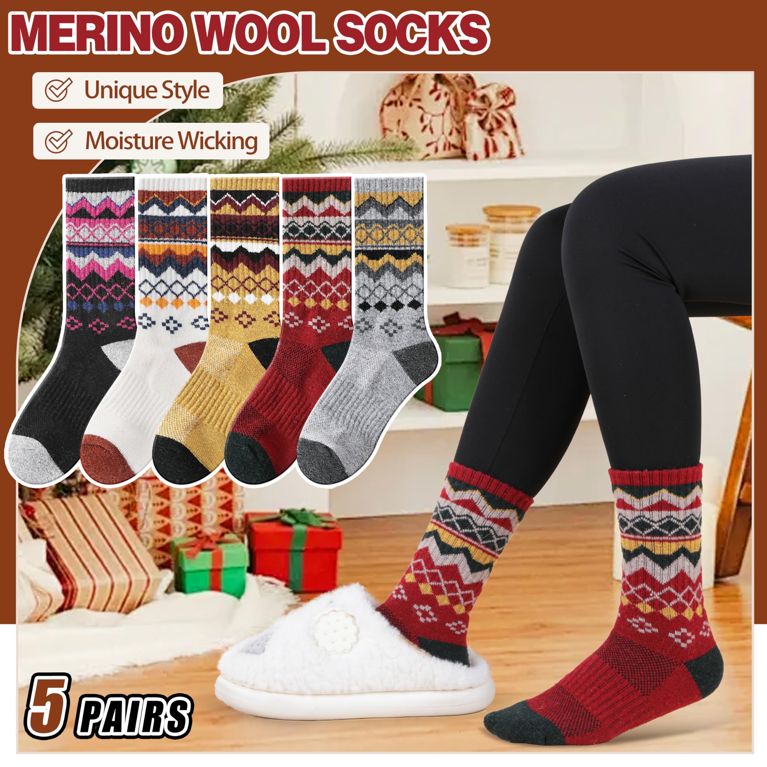 TWO SIZE OPTIONS - EBMORE merino wool hiking socks have 2 sizes as options, Medium & Large .Medium Size fits for US women’s shoe size 5.5-10.Large Size fits for US women’s shoe size 10-13. A package includes 5 pairs womens warm socks at a value price.