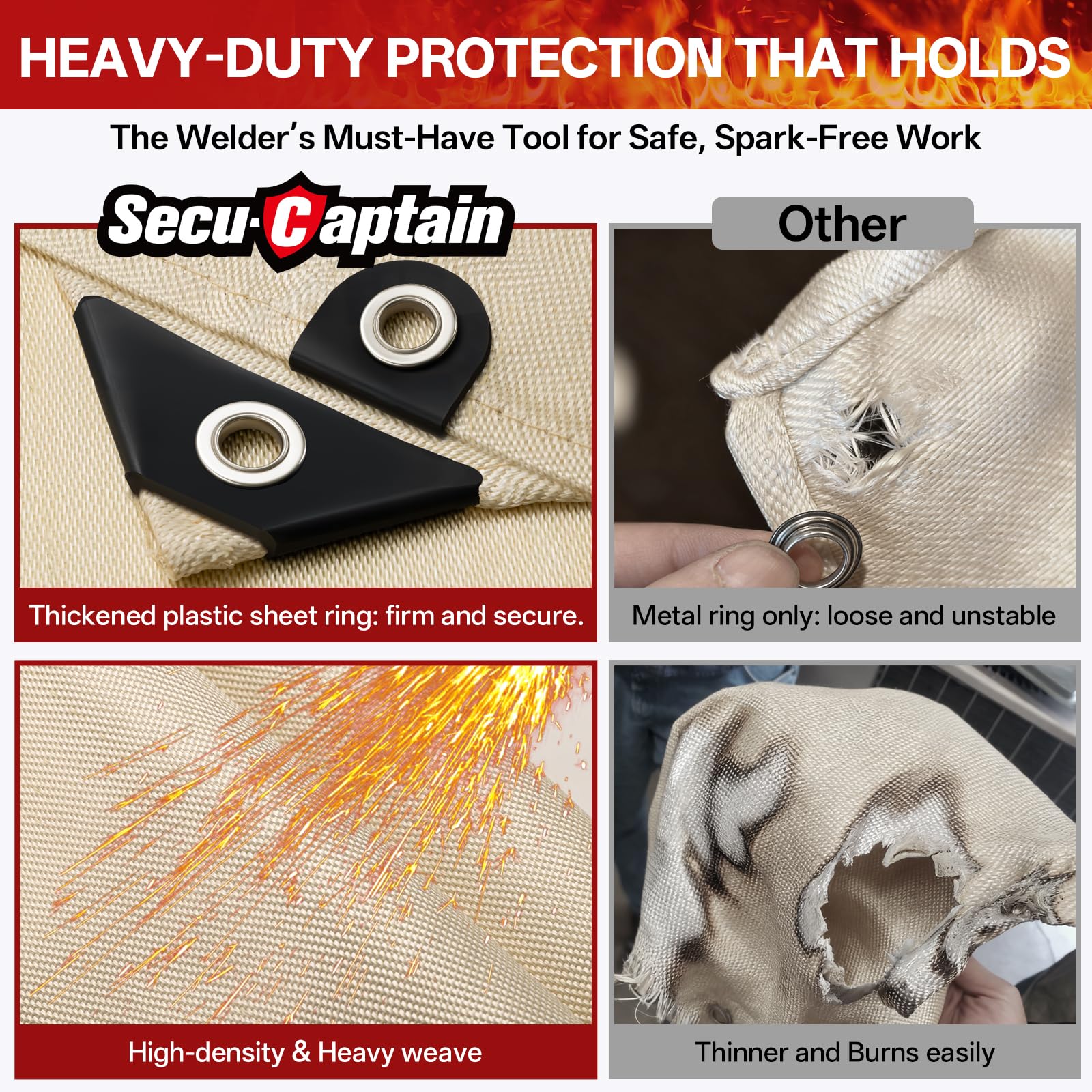 Upgraded Reinforced Design – Unlike standard welding blankets with plain grommets, this fiberglass welding blanket comes reinforced metal grommets that resist loosening, making it more durable and stable. Each grommet is fitted with a double-sided thick black plastic washer for added strength, ensuring stronger support, more secure hanging, and flexible installation for maximum durability and safety during welding, cutting, and fire protection