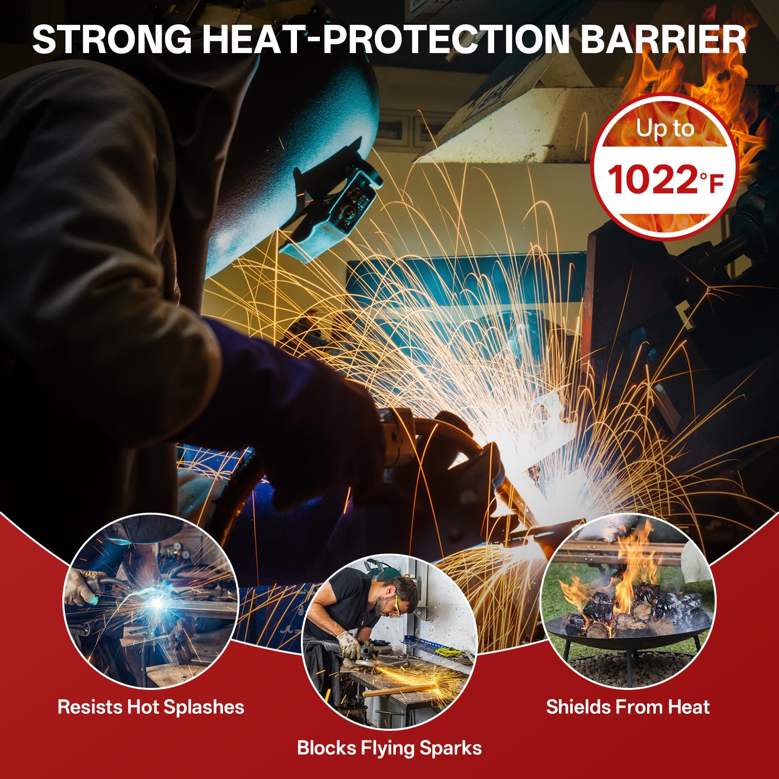 Heavy-Duty Fiberglass Welding Blanket – Made of 24.7 oz/yd² fiberglass with a 30x30 per square inch tight weave, this 4x6 ft (120x180 cm) , 0.31” (8mm) thick blanket resists heat up to 1,022℉ (550℃), protecting welders and surfaces from sparks, spatter, embers, and high temperatures. Tear-resistant and built for long-term reuse. Note: Fiberglass fibers may be present on the surface; please wear gloves when handling