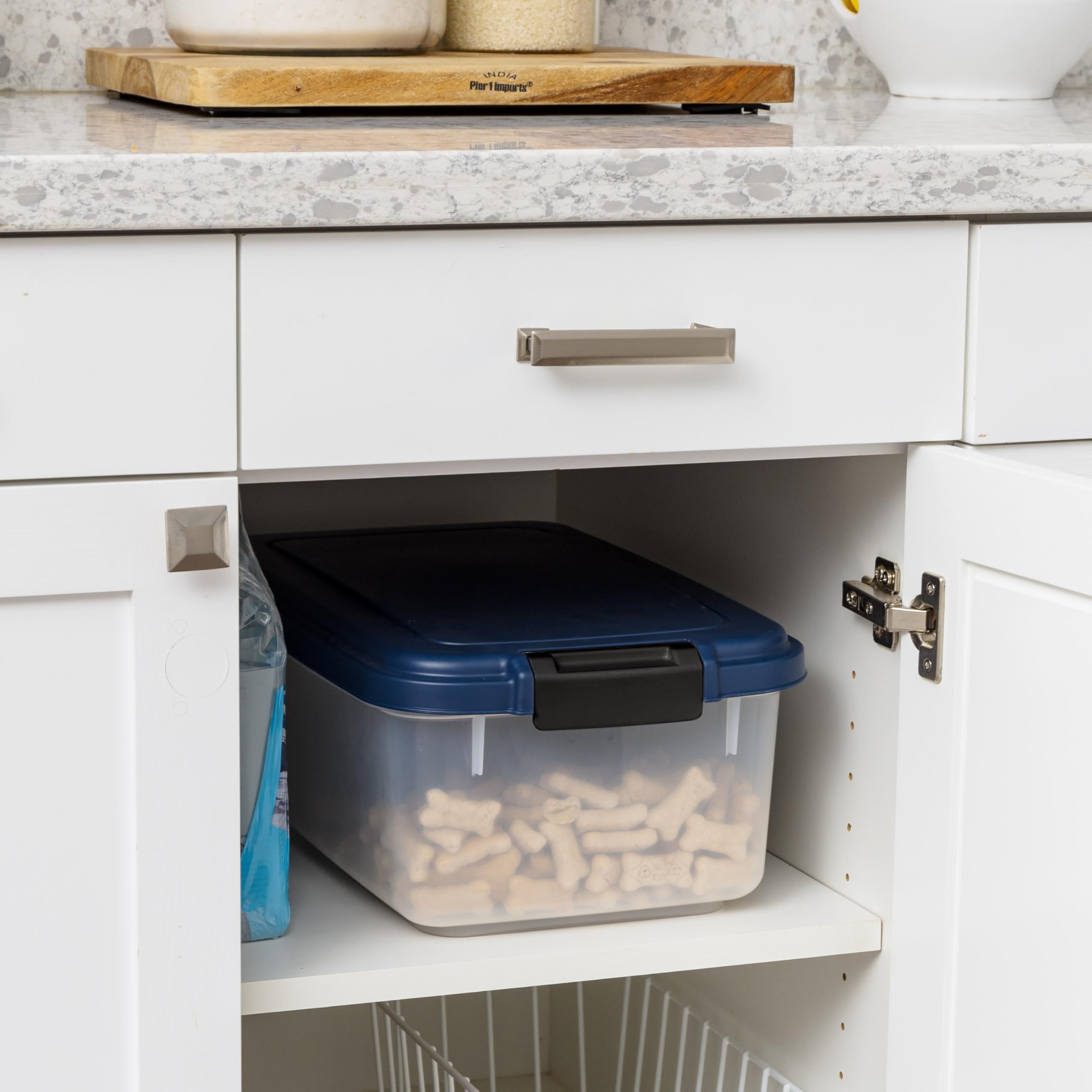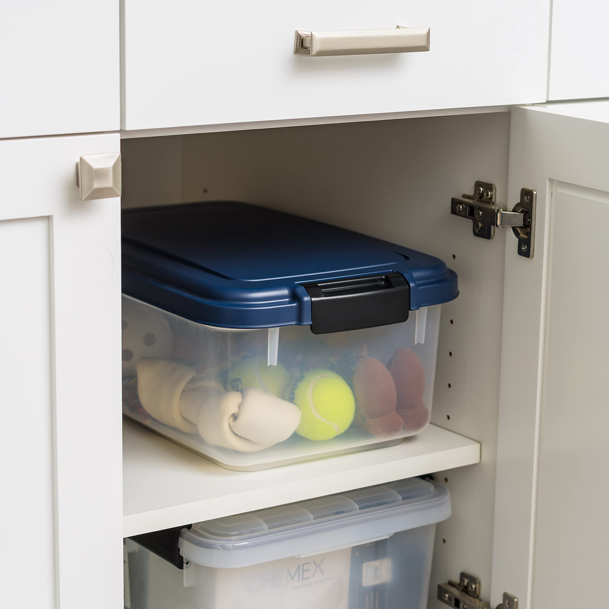 IRIS plastic airtight container is perfect for storing dog food, cat food, or any other dry pet food or treat you wish to store. The 14 Pound sealed storage container features a foam seal and snap lock latches to keep pet food fresh and keep moisture out. Designed as pet food bins, these BPA free airtight storage bins offer many other uses as well, such as leash and toy storage, pellet storage, grain storage, birdseed storage, cat litter storage, or even as a charcoal container. This IRIS airtight pet food container is translucent, versatile, functional, and can be used and stored in any area of the house.