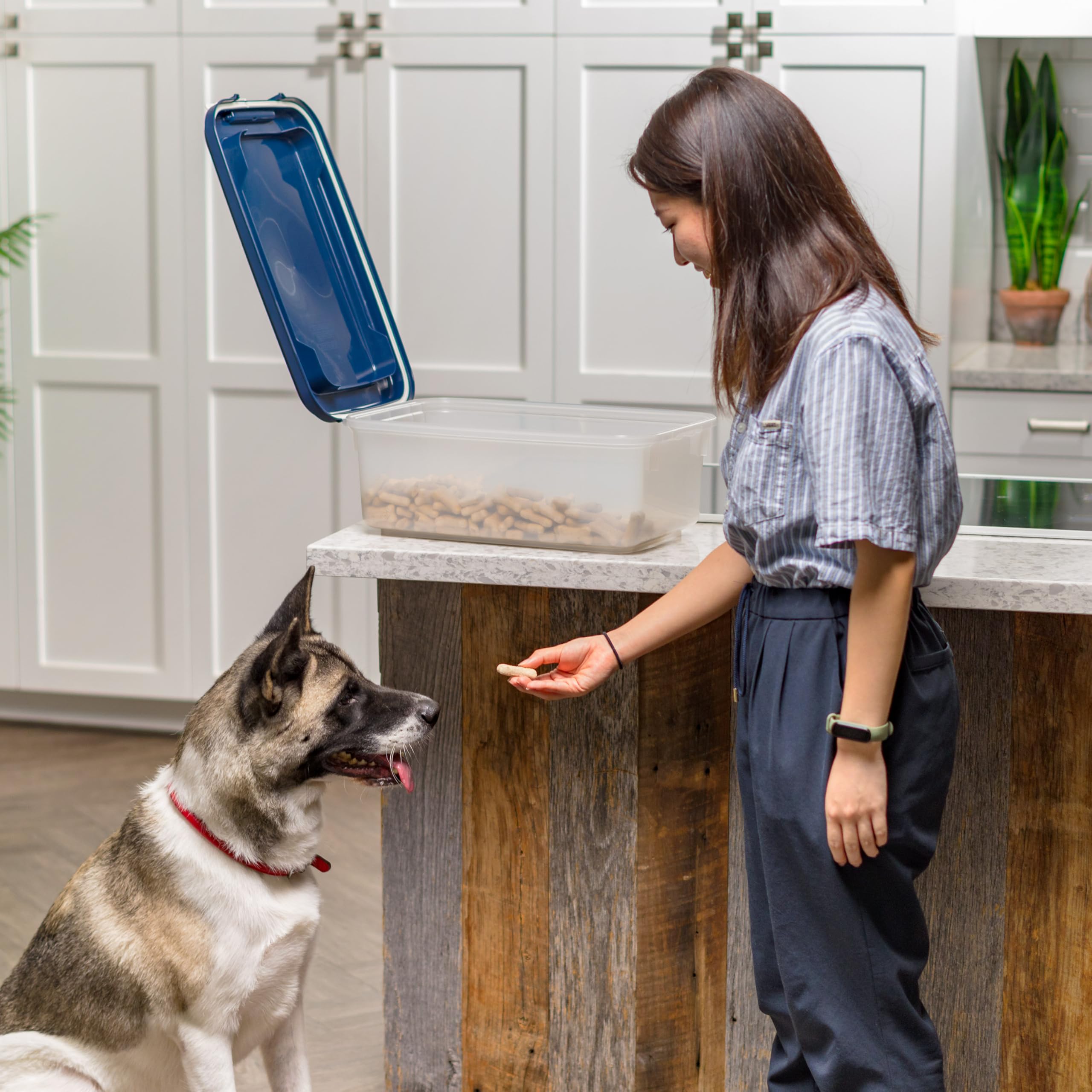 STACK AND STORE: The low profile pet food container is perfect for the cabinet or on a shelf. Stack two to save space and maximize your use of vertical space.