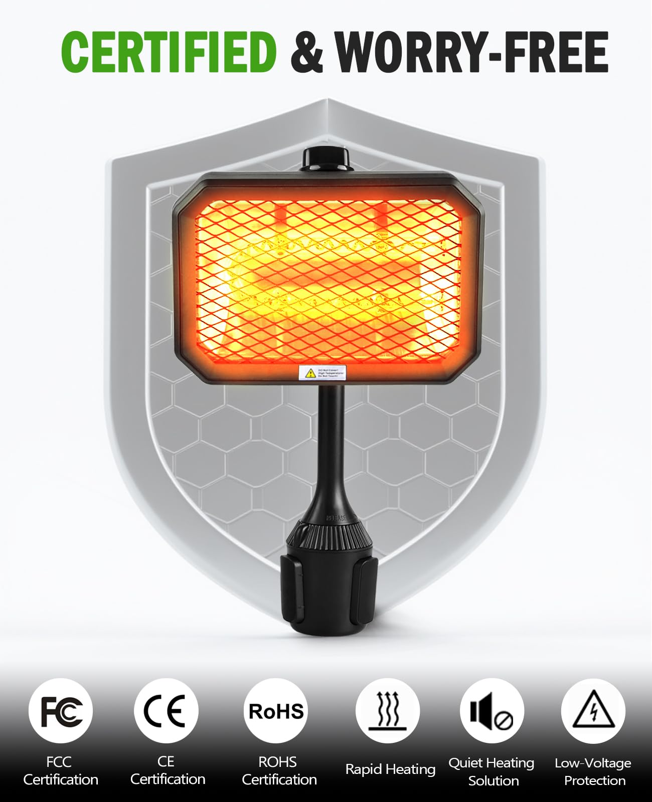 Certified & Worry-Free – Meets CE/FCC/ROHS safety standards. Unlike propane heaters, our electric powered heater emits no CO, no glare, and operates quietly. Ideal for cool mornings or evenings on the course!