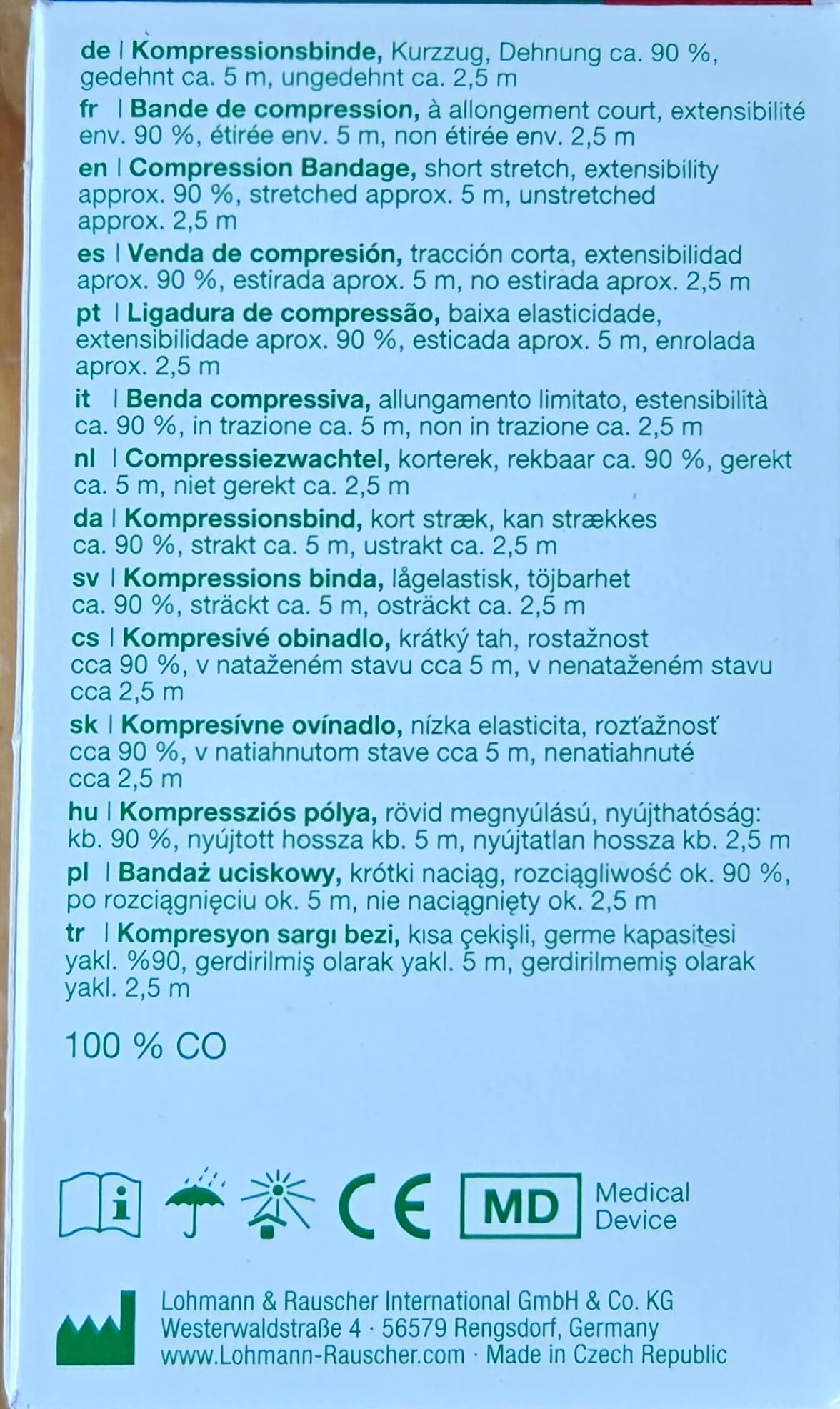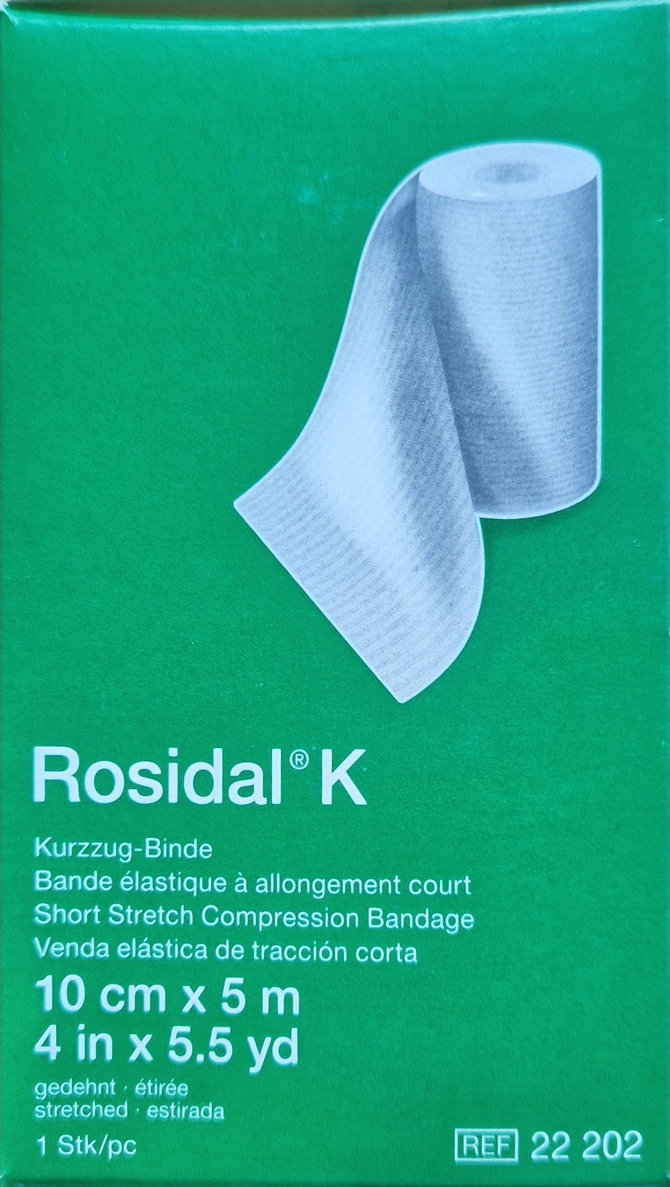 Rosidal K Short-Stretch Compression Bandage has high compressive power and durable elasticity; for strong compression of the extremities in phlebology as well as for the treatment of acute and chronic lymphedema; for support and relief in traumatology and sports medicine. The bandage is breathable and well tolerated by the skin. The firm grip fabric texture ensures that the bandage layers hold securely.