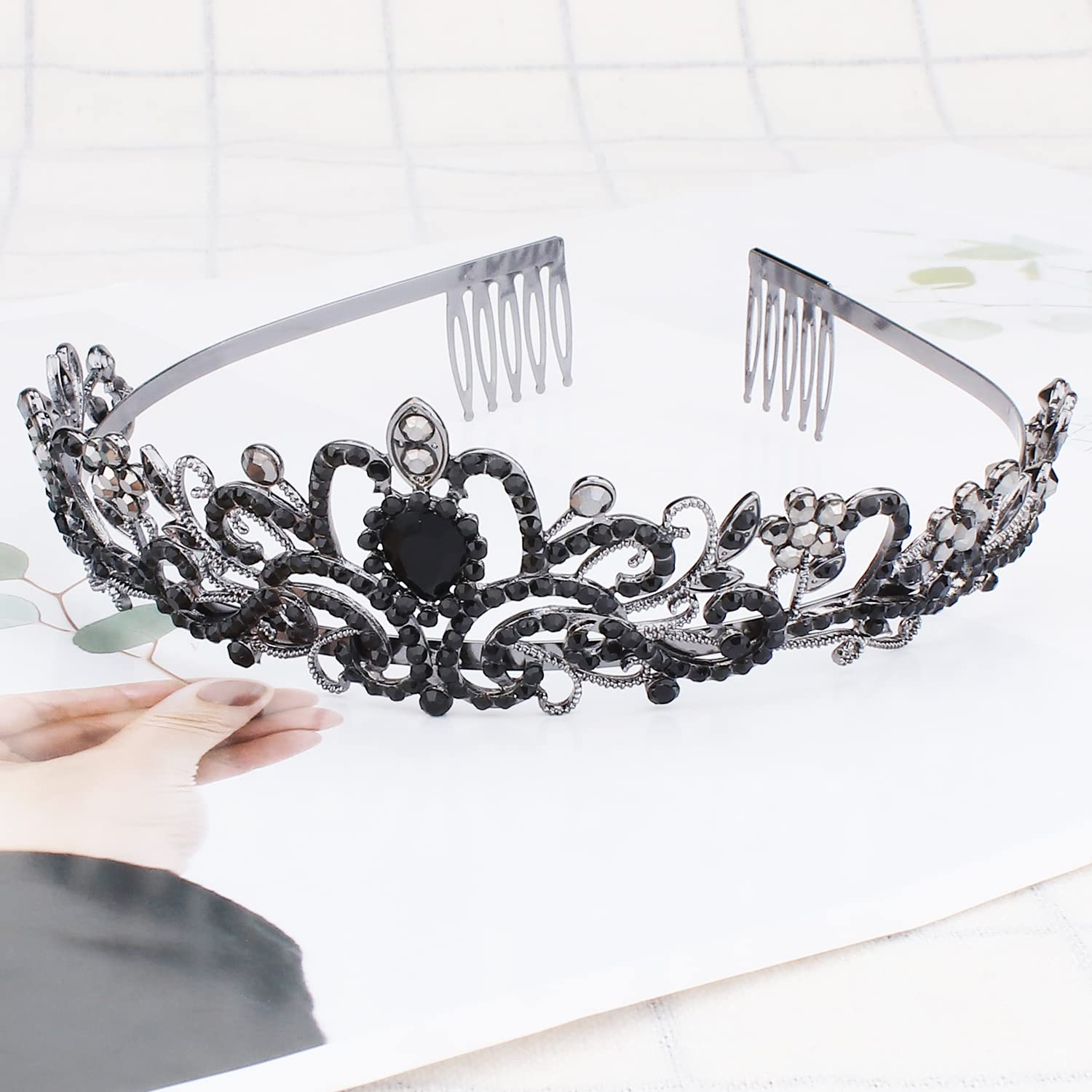 Crown With Combs: Rhinestone Tiara are adjustable as well comes with crown comb design that can holds and stable and comfortable on top of the hair.