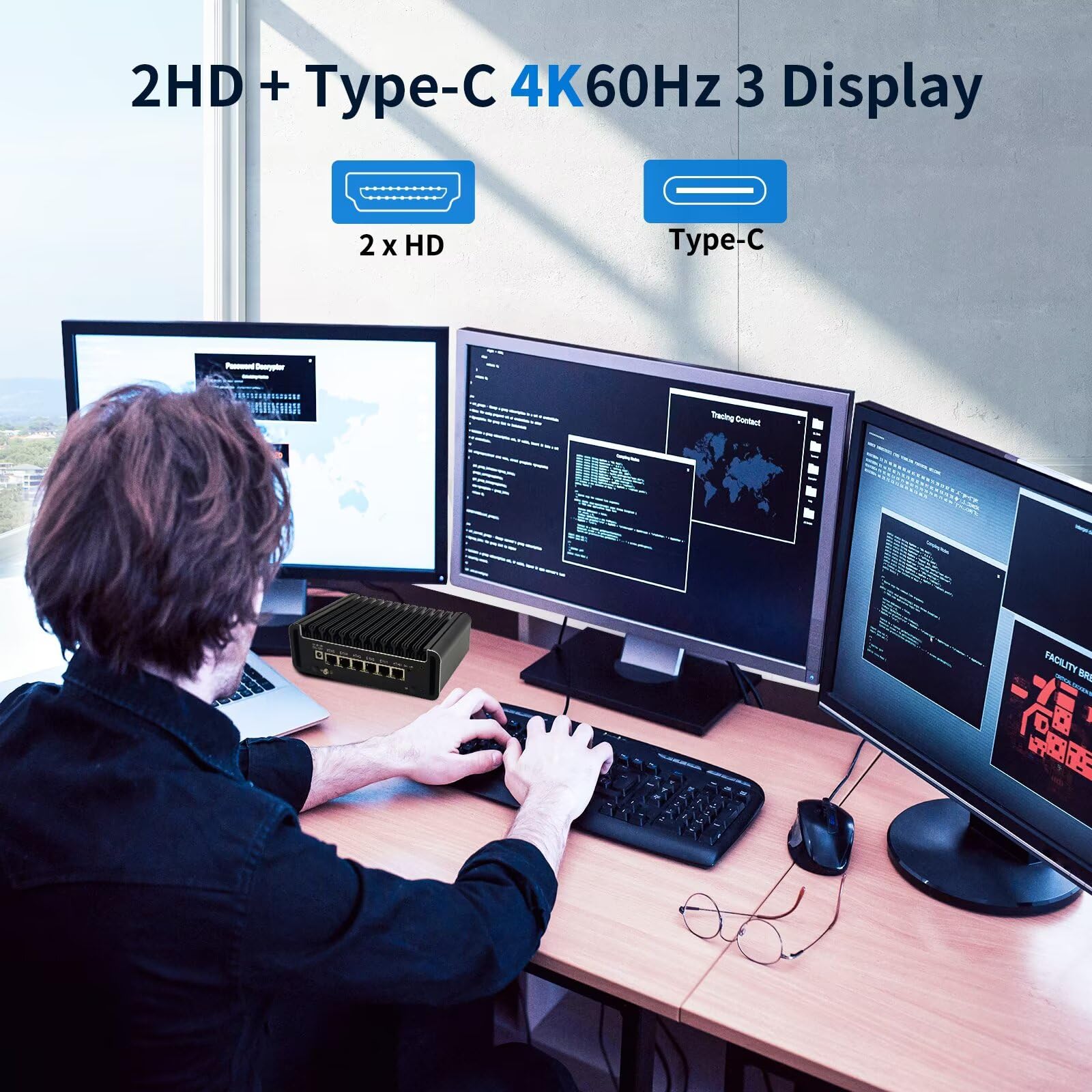 【12th Gen Twin Lake N150】GLOVARY firewall hardware with Twin Lake-N 12th Gen N150 Processor, 4 Cores 4 Threads, 6M Cache, up to 3.6 GHz, TDP 6W. Integrated UHD graphics with 2HD+Type-C triple display support 4K@60Hz. Windows 11 Pro system installed by default, supports OPNsense, Linux, ESXI, OpenWrt, etc. Tap "Delete" key to enter BIOS setup, AMI EFI BIOS supports Auto Power On, GPIO, PXE.
