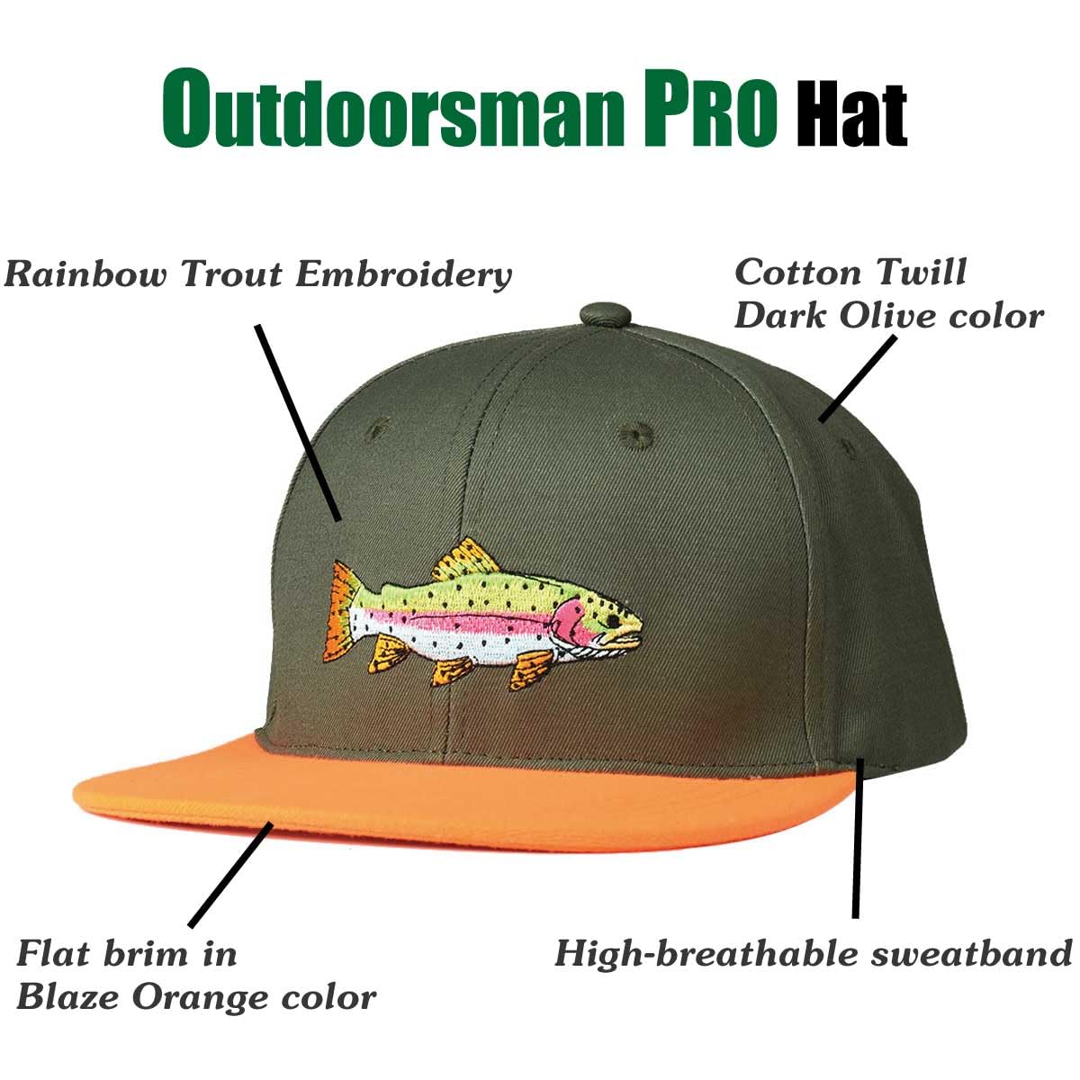 MODERN OUTDOORSMAN HAT - Outdoorsman Pro hat is structured, six-panel, high-profile and flat brim with adjustable snapback. Perfect as Camping hat, fishing hat, hunting hat, work hat, trail hat, baseball hat, all around cap