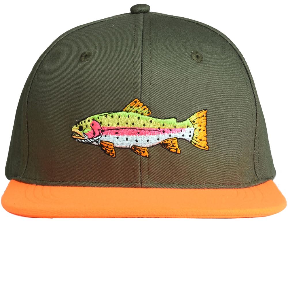 LOOKS GREAT - Each hat features unique and high quality embroidery preferred by outdoorsman. Rainbow trout with unmatched details on front panel. Green crown with blaze orange brim looks great. The great gift for outdoorsman and wildlife enthusiast